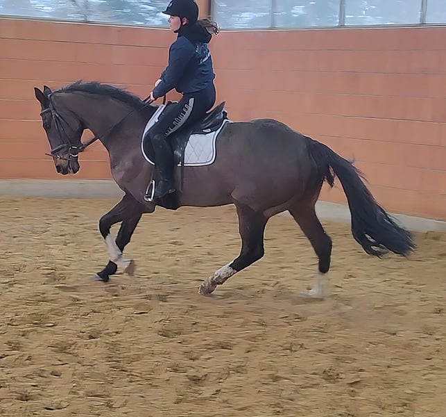 A 7-year-old, exceptionally easy-to-ride gelding, approximately 1.80 m tall, with beautiful, elastic movements. This horse suits riders of all levels and demonstrates excellent handling skills. He has already gained experience in sport and promises to bring joy to even demanding leisure riders. He is forgiving of rider errors and always strives to do his best. He is regularly ridden by a young girl without any issues. If desired, he can be sold with a complete set of new tack for a small additional fee. Trade-in options are available. Transportation can be arranged. A veterinary pre-purchase examination, including X-rays and blood tests, can be performed by your own veterinarian if preferred. We look forward to your call at 01774289729. Written inquiries will not be answered. Calls from blocked numbers will be automatically rejected.
