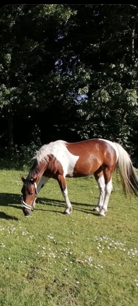 Vorweg: Er geht weder an einen Händler noch in Einzelhaltung, wir suchen das bestmögliche Zuhause für ihn, egal wie lange es dauert. Er ist kein Notverkauf. Schweren Herzens suche ich für meinen 8-jährigen Mix-Wallach (vermutlich irischer Traber) ein neues, langfristiges Zuhause. Er ist ca. 1,49 m groß und seit zwei Jahren bei mir. Bisher wurde er in einer 3er Herde bei uns am Haus gehalten. Seit etwa einem Monat steht er in einer Box. Auch da macht er sich gut, ich habe aber das Gefühl in einem Offenstall wäre er glücklicher. Er war bei uns Herdenführer und dominant. Beim Kauf wurde er mir als geritten und gefahren vorgestellt. Geritten wurde er vor meiner Schwangerschaft einige Male, seit längerer Zeit wurde er jedoch nicht mehr gearbeitet. Unterm Reiter zeigte er bisher Schritt und sowas wie Pass und Rennpass. Bei der Dame die ihn mir vorgeritten ist, ist er auch getrabt. Ob er galoppieren kann weiß ich nicht. Ich war ein paar Mal mit ihm im Gelände und da war er mutig und hat sich vor nichts erschrocken. Gefahren bin ich ihn selbst nicht. Ich kann mir jedoch vorstellen, dass er bei entsprechender Ausbildung auch für den Fahrsport interessant sein könnte, dies kann ich allerdings nicht zusichern. Ich habe die Vermutung, dass er in seiner Vergangenheit nicht korrekt oder nicht ausreichend ausgebildet wurde. Er zeigt keine solide Grundausbildung und kennt beispielsweise das klassische Longieren nicht. Im Umgang ist er beim Schmied und Tierarzt sehr brav und kooperativ. Beim Putzen ist er häufig ruhig, kann jedoch auch deutlich werden. In bestimmten Situationen legt er die Ohren an und droht, weshalb er eine erfahrene, souveräne Person benötigt, die klare Strukturen gibt und ruhig sowie konsequent mit ihm arbeitet. Er ist kein Anfängerpferd und kein Kinderpony, sondern ein Pferd für erfahrene Hände, die bereit sind, mit Geduld und Fachwissen neu anzufangen. Ich wünsche mir für ihn ein liebevolles Zuhause auf Lebenszeit, in dem er ankommen darf und individuell gefördert wird. Kennenlernen ist jederzeit nach Absprache möglich. Probereiten ist aufgrund der längeren Trainingspause aktuell nur eingeschränkt möglich. Bei ernsthaftem Interesse freue ich mich über eine aussagekräftige Nachricht mit kurzer Vorstellung. Es gilt Platz vor Preis, Bob ist wirklich ein tolles Pferd wenn man sich mit ihm beschäftigt und ihm klar Grenzen zeigt. Er hat definitiv das Potenzial dazu ein Traumpferd zu werden!