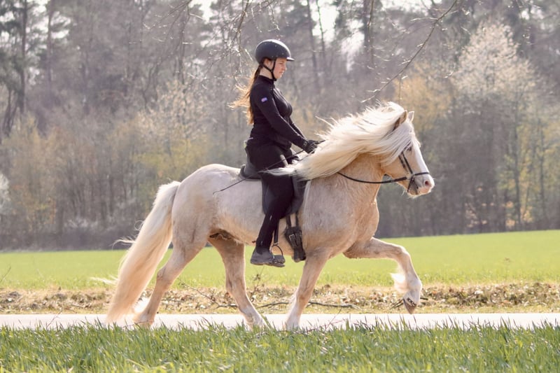 Fjórar Stjörnur vom Wittelsbacherland to elegancki ogier czterobiegowy. Jego cztery chody są wyraźnie od siebie oddzielone, eleganckie, łatwe w jeździe i charakteryzują się wysokim zakresiem ruchu. Ponadto jest on dobrze i łatwo regulowany w każdej sytuacji i o każdej porze. Fjórar zachwyca pięknym kolorem (jasny isabel z odcieniami windfarb i splash white carrier), dużym białym umaszczeniem oraz przyjaznym charakterem. Jego ojcem jest znany Dagfari frá Sauðárkróki (Fizo łącznie 8,34). Oprócz Fjórar, posiadamy w ofercie wiele innych koni na sprzedaż. Zapraszamy do kontaktu w celu umówienia się na prezentację – wspólnie znajdziemy odpowiedniego konia dla Ciebie!