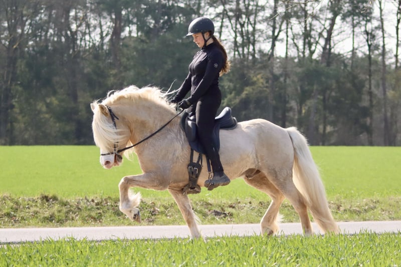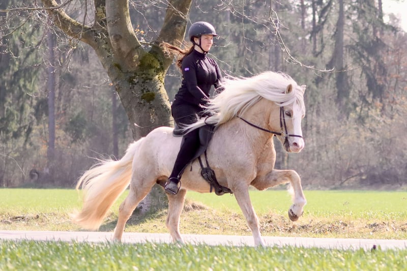 Fjórar Stjörnur vom Wittelsbacherland is een elegant gebouwde vierganghengst. Zijn vier gangen zijn duidelijk gescheiden, elegant, gemakkelijk te rijden en beschikken over hoogstaande bewegingen. Bovendien is hij overal en te allen tijde goed te reguleren. Fjórar valt op door zijn prachtige kleur (licht Isabel met Windkleur-gen en Splash white Carrier), veel behang en zijn liefdevolle karakter. Zijn vader is de bekende Dagfari frá Sauðárkróki (Fizo totaal 8.34). Naast Fjórar hebben we ook nog veel andere paarden te koop. Neem gerust contact met ons op om een kennismakingsafspraak te maken - samen vinden we het juiste paard voor jou!