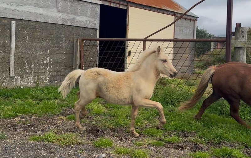 Markús is a beautiful palomino colt with a lot of charisma and friendly character. He shows natural tölt and good movements already at his young age, making him a very promising future riding or competition horse.He grows up in natural conditions in a large herd on our farm in Iceland, which ensures strong health, correct development and good social behavior. Markús will be weaned in November 2025. Boarding at our farm until export is possible. Transport to Europe can be arranged.