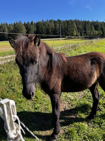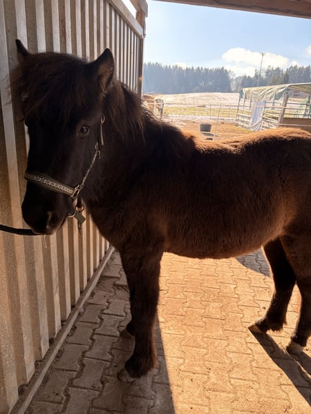 Aus gesundheitlichen Gründen muss ich leider meinen 2 jährigen Hengst in beste Hände abgeben. Bylur vom Grafenbuch *24.04.2024 M:Brynja frá Ey1 MVV: Keilir frá Miðsitju V: Drifandi vom Haidberg VV: Eyvinur vom Vindstadir Rappe Standort 92283 Lauterhofen Bylur ist ein kecker, freundlicher Fünfgänger der bereits am ersten Tag mit außergewöhnlichem Tölt-Talent begeistert hat. Außerdem zeigt er gute Rennpasssequenzen und sehr guten Galopp mit ebenfalls hoher Bewegung und viel Tempovarianz. Natürlich zeigt er sich immer wieder Trab mit gutem Takt und schöner Bewegung. Bylur hat ein sehr korrektes Gebäude, ist kräftig und gut bemuskelt. Für sein Alter ist er auch bereits hoch gewachsen, mit einem sehr stabilem Fundament sowie breitem und kräftigen Rücken. Sein Charakter ist sehr aufgeschlossen, mutig und freundlich. Er geht brav am Halfter, ist schon mehrfach Hänger gefahren und lässt sich im täglichen Handling problemlos alles machen. Das Fohlen ABC beherrscht er ohne Probleme, auch am Putzplatz anbinden ist für ihn ganz normal und ohne Stress verbunden. Tierarzt sowie Schmied kennt er gut und bleibt auch hier ganz gelassen und ruhig. Bylurs Mutter ist eine sehr kräftige große Fünfgangstute mit extrem gutem Tölt und Galopp. Bylur wird später ein vielseitiges Luxus Freizeitpferd werden. Bei Interesse könnte Bylur auch weiterhin in seiner aktuellen Jungpferde Herde aufwachsen.