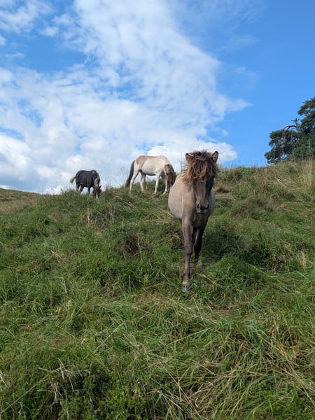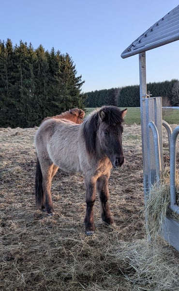 Álfarinn von Königsstaðir *2024 Mausfalbe Álfarinn war Siegerfohlen der Fohlenmaterialprüfung in Wertheim. Er vereint alles was man sich wünschen kann: eine beeindruckende Größe, spektakuläre Gänge, einen Traumcharakter und eine Abstammung, die keine Wünsche offen lässt! Hier reift ein Hengstanwärter heran! M: Edda Embla vom Bautzenhof (Vollschwester von Eldvör vom Lipperthof-Zuchtweltmeister) V: Árli von Laugasteini (VV:Kjarri frá Stáli) Ob für die Zucht, den hohen Sport oder als Luxusfreizeitpferd, Álfarinn ist definitiv für alles geeignet. Er ist geimpft, entwurmt, halfterführig und dem Schmied vorgestellt. Seinen traumhaften Aufzuchtsplatz könnte er bei Bedarf behalten. Dort kann er auch problemlos als Hengst bleiben. Preis der Qualität entsprechend. Videos und weitere Informationen gerne auf Anfrage!