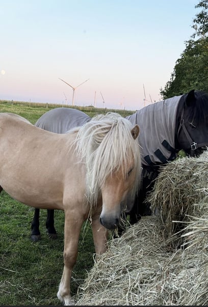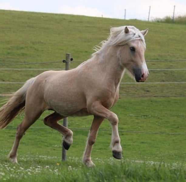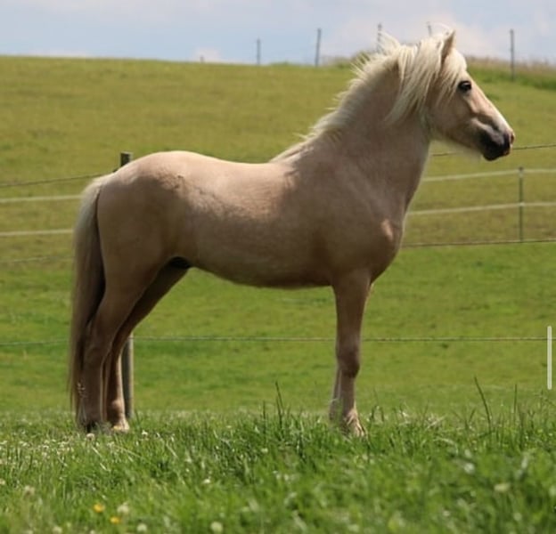 Snaer von der Rotbuche Sehr lieber Junghengst aus Mai 2022 mit weiten Bewegungen. Er ist momentan ca 1,35 groß, wir erwarten ein Endstockmaß von ca 1,40 . Snaer kennt das Fohlen ABC und ist im Umgang sehr freundlich. Er ist Menschenbezogen, kennt Hänger fahren, Gelände, Longieren, Tierarzt und Hufschmied. Auch Hunde, Kinder, Schafe, Autos sind kein Problem. Er fällt nicht nur durch seine liebe Art auf, sondern natürlich auch aufgrund seiner tollen Optik. Snaer ist gesund und hat keine Fell oder Huf Krankheiten. Ich würde ihn als bewegungsfreudig und neugierig beschreiben. Im ,,Training“ ist er immer wach und lernbereit, weshalb ich denke, dass sich seine weitere Reitpferd Ausbildung unkompliziert gestalten wird. Snaer könnte bei Bedarf im März bei uns gelegt werden. Bei Interesse oder weiteren Fragen melden sie sich gerne Die letzten beiden Bilder zeigen seinen Vater Mánaskin.