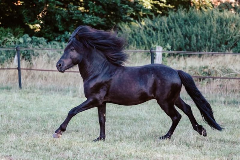 Mit seinem Stockmaß von 146 cm und seiner prächtigen Mähne ist Alvitur ein echter Blickfang. Allein seine Erscheinung lässt Herzen höher schlagen. Alvitur ist ein absolutes Verlasspferd, das mit seinem Reiter durch dick und dünn geht. Er ist brav, leicht zu handeln und wurde vielseitig ausgebildet (Dressur, Extreme-Trail, Springen, Wanderritte, Turniere, Teilnahme am Reitabzeichen III Vorbereitungskurs). Durch seine gute Aufrichtung bietet er auch größeren Reitern ein tolles Reitgefühl. Alvitur ist ein zuverlässiger Hengst, der auch problemlos neben Stuten stehen kann. Er wird freizeitmäßig im Gelände, auf der Bahn und in der Halle geritten und wird nur wegen Aufgabe des Reitsports verkauft. Platz vor Preis.