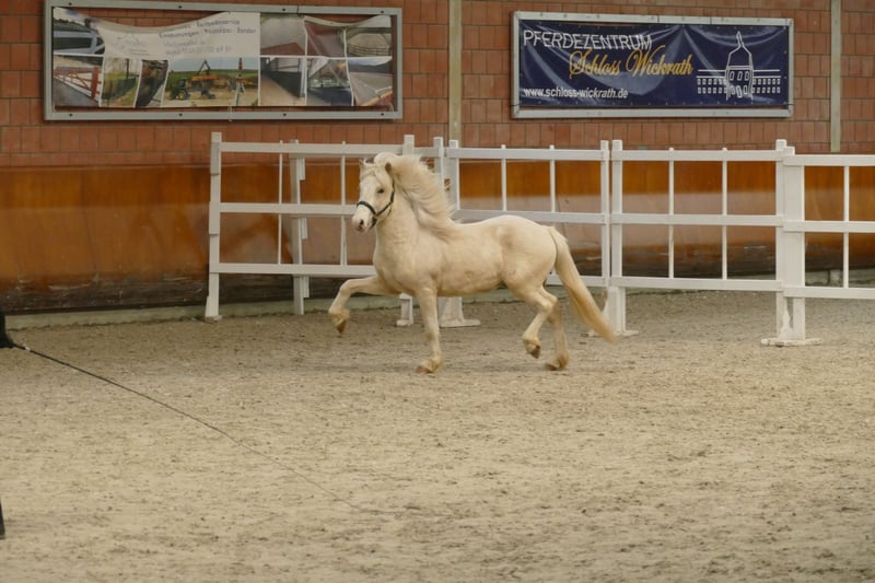 Körungssieger im Rheinland - Draumur vom Veybachhof Unser spannender W8-Gen-Träger Draumur vom Veybachhof konnte sich auf der Jungpferdematerialprüfung in Wickrath hervorragend präsentieren! Belohnt wurde er mit einer 8,06 als Gesamtnote, mit der er natürlich gekört wurde und sogar als Körungssieger des Rheinlands hervorgeht! Draumur ist ein Sohn aus unserer bewährten Zuchtstute Diva vom Phönixhof, die im vergangenen Jahr das zweitbeste Fohlen deutschlandweit -Dux vom Veybachhof- hervorbrachte. Der Vater ist Pegasus vom Recherbusch, von dem Draumur unter anderem seine außergewöhnliche Farbe geerbt hat. Exterieur 8,02 Charakter 8,16 Gänge und Bewegung 8,04 Gesamt 8,06 Richterspruch: Ausdrucksvoller gut aufgerichteter Junghengst mit hoch weiten elastischen Bewegungen und guter Tempofähigkeit im Trab und Tölt und guter Balance. Draumur ist mitlerweile angeritten und zeigt alle Gänge mit viel Fluss, Tempofähigkeit und natürlicher Bewegung ab dem ersten Tag. Zudem hat er durch sein tolles Gebäude immer eine gute Form, ist leicht in der Hand und sehr gut ausbalanciert. Wir planen Draumur dieses Jahr Fizo vorzustellen.
