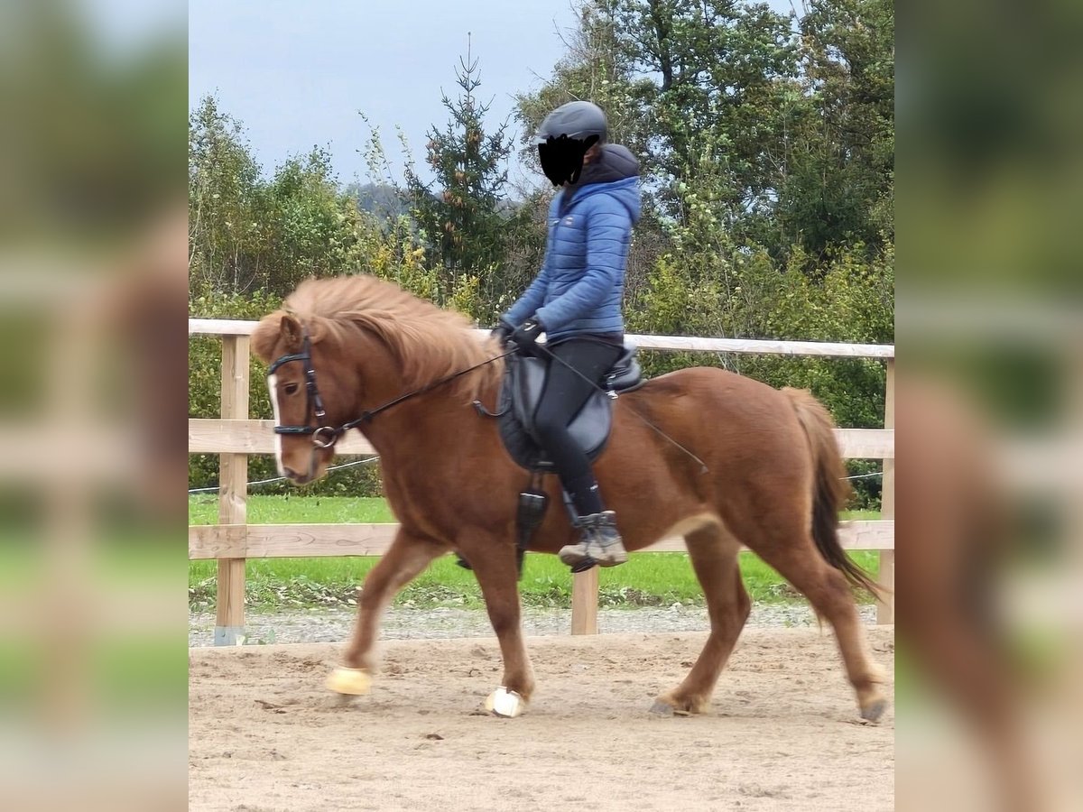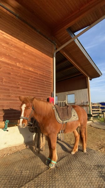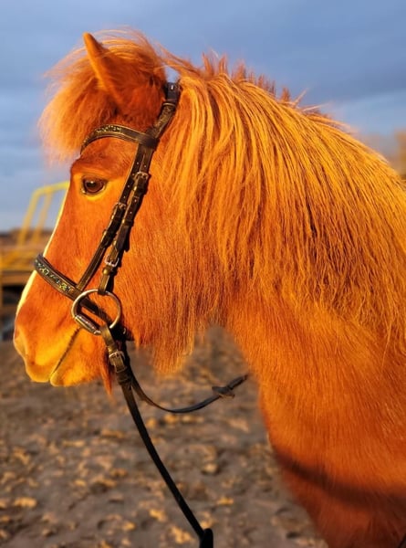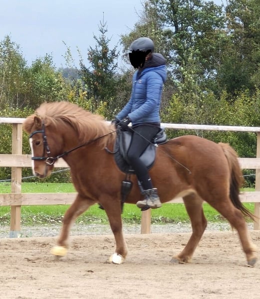 Zum Verkauf steht die 10-jährige Islandstute Garún frá Mosfellsbæ (Fuchs mit Blesse) mit einem Stockmaß von 129 cm. Garún verfügt über alle fünf Gänge und zeigt sich naturtöltig, wobei der Tölt ihre Lieblingsgangart ist. Der Pass ist vorhanden, wurde jedoch bisher noch nicht weiter herausgeritten. Sie ist sportlich, fein zu reiten und mit viel Go ausgestattet und eignet sich daher besonders für erfahrene Reiter. - geht alleine und in der Gruppe - an jeder Position in der Gruppe reitbar - deckt auch größere Reiter gut ab (Reiterin auf den Fotos 177 cm) - reagiert fein auf Körpersprache Garún kam im Dezember 2023 aus Island nach Deutschland und lebt aktuell in einer kleinen Offenstallherde. Aufgrund gesundheitlicher Umstände der Besitzerin stand sie längere Zeit und ist erst seit einigen Wochen wieder im Training / Beritt. Gesundheit / Handling - schmiede-, tierarzt- und verladefromm - regelmäßig entwurmt - leichtes Sommerekzem bekannt, aktuell symptomfrei, mit Decke gut zu managen Abstammung Vater: Kíljan frá Steinnesi (FIZO 8,78, Ehrenpreis für Nachzucht) Mutter: Tinna frá Síðu Großvater mütterlicherseits: Illingur frá Tóftum (Sieger Zuchtklasse Landsmót 2002, 2. Platz A-Flokk Landsmót 2008)