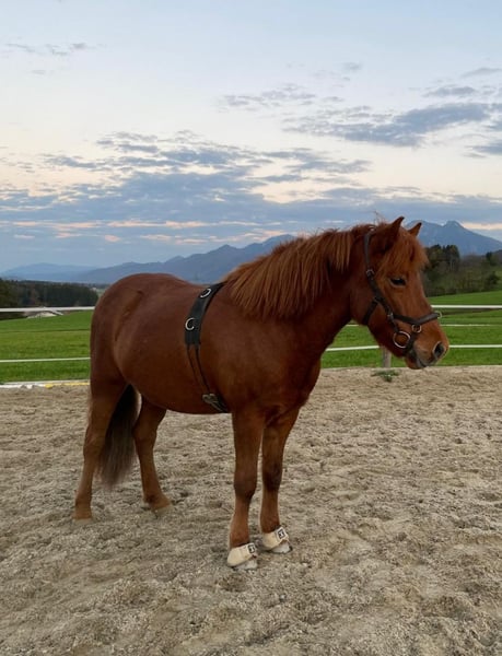 Large, spirited five-gait mare with a strong build, 11 years old, well-trained and with attractive gaits, seeking her person. This chestnut mare is completely fearless and brave, full of energy, yet always manageable. She can also be ridden by children when led. In handling, she appreciates clear communication and consistency. She is familiar with groundwork, hand-led riding, and cycling, loves water and enjoys going for walks. In the herd, she is low-ranking and uncomplicated. Unfortunately, she has shown signs of stomach discomfort during stressful times over the past few years. Therefore, she needs a place that offers a stable herd environment where she can graze and rest undisturbed despite her lower rank, and a person who does not focus primarily on riding, as she may sometimes be less resilient during stressful phases. I wish for her to find a place where she can simply be a horse, with someone who cares for her lovingly and keeps her occupied. Due to her harmonious conformation and good lineage (sire: Spoliant vom Lipperthof), she could also be considered for breeding purposes. Priority is place, not price! Further details gladly discussed in person.