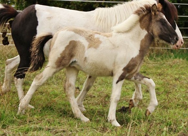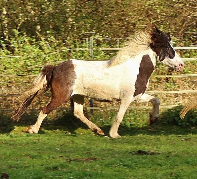 Genesis cerca una persona che possa continuare a educarla e addestrarla o che abbia interesse a farla riprodurre. L’anno scorso è stata messa in sella e, a causa di mancanza di tempo, ha trascorso un periodo più lungo al pascolo. Da poco è di nuovo montata. Prima di ciò, ha lavorato in riproduzione, dimostrando ottimi risultati come fattrice, ed è iscritta alla prima categoria di registrazione, con un punteggio di 7,9 per passo e aspetto. Per questo motivo, è ancora poco utilizzata sotto la sella e non è stata sfruttata eccessivamente in riproduzione, grazie a un buon tessuto connettivo. Attualmente, è un po’ in sovrappeso a causa del lungo periodo di inattività, ma con un training costante il suo peso dovrebbe tornare a livelli ideali, soprattutto considerando che ha già acquisito una maggiore forma grazie al lavoro montato. Genesis è una cinque-gang e, in libertà, mostra principalmente i suoi ottimi e sicuri passi di base, caratterizzati da ampi spazi di movimento e movimenti eleganti. A volte esegue anche il Tölt. Sotto la sella, ha un passo sempre regolare e facilmente richiamabile anche il trotto. I cambi tra Tölt e trot sono molto semplici da eseguire con poche spinte. Ora è molto facile da mettere in Tölt, anche se richiede ancora un po’ di supporto e allenamento per mantenere il Tölt pulito su lunghe distanze. Si percepisce chiaramente quando si stanca, perché cerca di passare al trot da sola. Per questo motivo, attualmente viene montata solo su brevi tratte con pause, per sviluppare muscolatura e resistenza. Non la lavoro ancora al galoppo, poiché la sua condizione non è ancora sufficiente: su terreni pianeggianti non riesce a mantenere il galoppo con il cavaliere e può cadere in passaggio o in un incrocio di galoppi. In salita, invece, è molto più facile per lei mantenere il ritmo del galoppo, si può anche incoraggiare facilmente e salta molto bene il galoppo. Con più allenamento e lavoro di ginnastica, credo che un giorno riuscirà a galoppare anche su terreni pianeggianti in modo molto fluido. Non conosce ancora le aiuole per il passaggio, ma una volta che ci è caduta dentro, sono riuscita a accelerare senza problemi, dimostrando che non è affatto priva di talento in questa disciplina, anche se attualmente le manca ancora forza e resistenza. In generale, reagisce bene alle aiuole senza essere sensibile, e per il mulo, il trotto e il Tölt, basta spesso un aiuto vocale. Risponde sempre in modo diretto anche alle richieste di rallentare o fermarsi, poiché attribuisco grande importanza a un cavallo che abbia un buon freno. Genesis può avere un temperamento vivace, ed è per questo, oltre al suo livello di addestramento, adatta solo a cavalieri esperti e sicuri di sé, che vogliano continuare a educarla e farla progredire. Attualmente, viene montata in autonomia in passeggiata. Nata nel 2013, Genesis è sempre stata sana, senza eczema, vaccinata e regolarmente sverminata. Può essere montata anche da me con facilità, nonostante abbia una taglia media; grazie alla sua struttura compatta e armoniosa, alla sua presenza e alla postura eretta, sembra più grande sotto il cavaliere. Ha arti robusti, una corporatura quadrata e un collo ben inserito, che le permettono di portare senza problemi un adulto fino a 75 kg. Per quanto riguarda la genealogia, Genesis non delude: è nipote del famoso Glampi frá Vatnsleysu e include anche Adam frá Ásmundarstöðum e Hrafn frá Holtsmúla tra i suoi antenati. Genesis è una splendida cavalla pinto con un segno bianco sulla fronte, un occhio marrone e uno blu. È geneticamente confermata come nera pura, quindi, in riproduzione, non può mai produrre un puledro di colore fuchs. Grazie al suo stallone di sangue Helmscheck, ha sicuramente ereditato il gene Splash, e può trasmetterlo al 50%, così come il gene Tobiano. Può essere testata da un cavaliere esperto, e se tutto va bene, può trasferirsi rapidamente in una nuova casa. Il video è molto recente. Le ultime foto dei suoi puledri sono nella galleria fotografica. L’Akku può essere fornita dal compratore. Per un interesse reale, sono disponibile a ricevere un messaggio. A causa di brutte esperienze, non viene venduta in Svizzera.