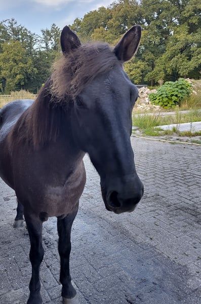 Pálína is een lieve 14-jarige Roan-kleurige merrie, die nu echt haar forever-home verdient! We zien Pálína als recreatiepaard om lekkere buitenritten mee te maken, eventueel afgewisseld met training in de bak. Ze heeft een lichte dressuurmatige basis waarin ze bijvoorbeeld in aanleuning en zijgangen kan lopen, maar ze is hierin niet ver doorgetraind. Buiten gaan haar oortjes naar voren en is ze lekker voorwaarts met een goede rem. Ze is goed verkeersmak en vindt niet snel iets spannend. Als je samen met een ander paard op pad gaat dan wil Pálína wel het liefst voorop. Dit paard met een gouden hartje zoekt een dito baasje met een gouden hartje voor haar. • Geboren op IJsland in 2011, naar Nederland gekomen in 2021 • Roan-kleurig • Merrie • Stokmaat ca. 140cm • 4-ganger • Verkeersmak, kan samen en alleen naar buiten • Voorwaarts maar met goede rem • Kan zowel met bit als bitloos worden gereden • Staat bij ons niet op ijzers • Volledig gevaccineerd en naar de tandarts geweest • Staat hier in de zomer met deken en vliegenkap en ziet er goed uit • Dingen zoals trailerladen, hoefsmid en met water afspuiten geen probleem • Prijsindicatie 5.000-6.500 Wordt Pálína jouw nieuwe hartenpaard? • Ruiter maximaal 70kg • Stallingssysteem met dagelijks veel bewegingsvrijheid Een beetje achtergrond: Pálína is pas laat in handen gekomen; op 9-jarige leeftijd is zij onbeleerd uit IJsland gehaald. Zij is vanaf toen wel bereden geweest maar ze bleef erg veel last van spanningen houden. Niet hoofdzakelijk onder het zadel maar vooral ook in de omgang. Eigenlijk vond zij alle mensgerichte handelingen in haar nabijheid ontzettend eng: Een halster over haar oren, een aaitje of klopje op de vacht, een deken op, de hoefsmid, op 3 meter afstand met je armen zwaaien, etc., etc.. Met een omweg is zij vorig jaar bij mij terecht gekomen en na ruim een jaar training en bevestiging bieden, gericht op het leren omgaan met haar spanningen, is zij nu gelukkig een compleet ander paard geworden. Zij weet zichzelf nu goed te ontspannen en dingen waar zij voorheen van in de paniek schoot daar geeft ze nu geen kick meer om. Daarmee is zij nu dus echt klaar voor haar forever-home! Ondanks dat er nu geen spanningsproblemen meer zijn en zij absoluut geen ‘probleempaardje’ meer is, zoek ik een baasje die wel haar achtergrond begrijpt en Pálína op sommige momenten eventueel nog steun kan blijven bieden door wat kleine trainingsstapjes te herhalen. Uiteraard zal ik zelf ook met liefde het nieuwe baasje hierin op weg willen helpen en begeleiden waar nodig.