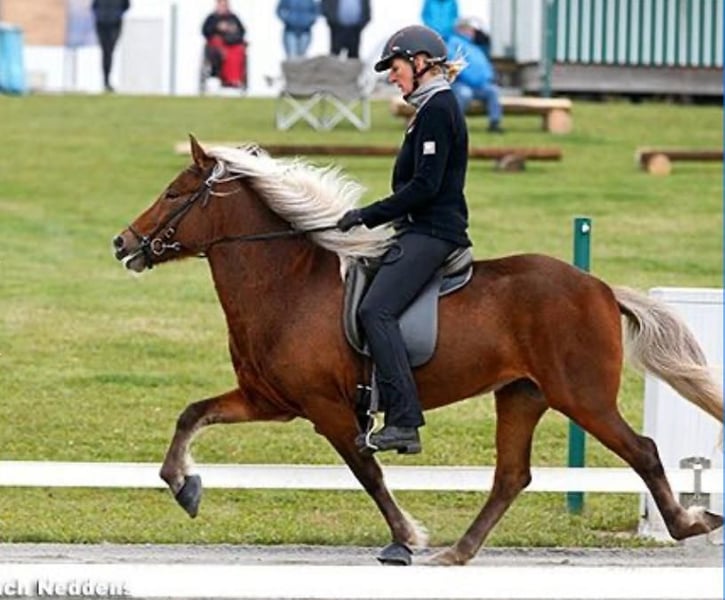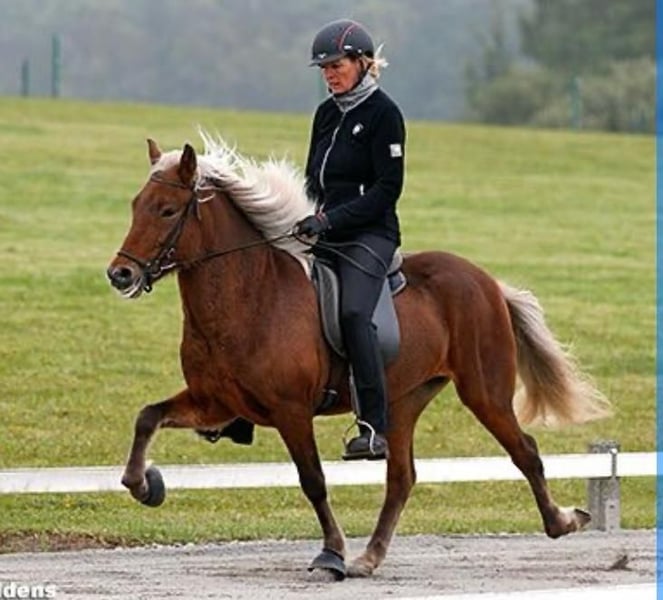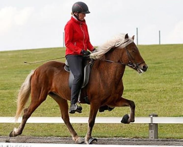 Description: Fjóla is currently seeking her "forever home." She is a wonderful, well-trained, and completely reliable five-gaited mare. Her proverbial "sewing machine trot" ensures an exceptionally comfortable riding experience. She was previously a successful competition horse in the five-gaited discipline and is now one of our most dependable school horses, as well as one of our absolute favorites. We are now looking for a new home where she can have a dedicated person or a loving family who will pamper her and provide her with a long-term, permanent place to live. Conformation: Fjola has a sturdy build and a solid physique. She is in good condition, well-fed, and well-cared for. Temperament: It is important to note that Fjola has a handicap: she has impaired vision in her left eye. However, this hardly affects her in daily riding. She can be ridden normally in the indoor arena, on the riding pad, and in the field. Only jumping and work over poles are not possible due to her limited vision. Gaits: As a large and strong five-gaited mare, Fjola has well-separated, expressive gaits. Her endless, very pleasant Tölt is particularly noteworthy—it can be ridden at a lively pace and provides a lot of riding fun. Training Level: Fjola is very well-trained and responds reliably to aids. Her previous competition experience in the five-gaited discipline and her many years as a dependable school horse make her very experienced and reassuring for riders. She can be ridden in all dressage gaits and works attentively with her rider. Who is she suitable for: Fjola is ideal for riders seeking a completely reliable horse with which they can relax and enjoy a brisk Tölt through the terrain. At the same time, she is suitable for riders who want to develop further in riding lessons, as she can be dressaged in all gaits. Due to her calm and dependable nature, Fjola is a horse for the whole family. Care Condition: She is in good condition, well-fed, and free of eczema. Other notes: It is important to know that Fjola has a handicap: she has impaired vision in her left eye. However, this hardly affects her in daily riding. She can be ridden normally in the indoor arena, on the riding pad, and in the field. Only jumping and pole work are not possible due to her limited vision. Besides Fjola, we also have many other horses for sale. Feel free to contact us to arrange a viewing – together, we will find the right horse for you!