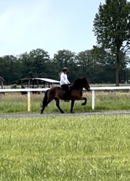 I am selling my wonderful Rót frá Kálfhóli 2. She was born in 2009 and is a very solidly built, four-gaited mare standing at 1.40 meters. She has an excellent character, very good gaits, and outstanding lineage. Her sire is the magnificent Sveinn-Hervar frá Þúfu í Landeyjum, who himself descends from the legendary Orri frá Þúfu í Landeyjum. Due to her high, expressive movements, she is suitable both for riders seeking a top-quality leisure horse and for competitive riders or those aspiring to compete. I could also see her as a good match for a young rider. However, with her gait quality and moderate temperament, she is not suitable for beginners. Riding Rót is always enjoyable, and she puts great effort into her work; she is also a true sweetheart in handling. Additionally, she is completely shoe- and loading-safe. I am looking for the best possible home for this exceptional mare and can easily imagine her with an ambitious rider eager to grow together with such a horse. Please feel free to contact me for further questions. *Price negotiable, place before price.