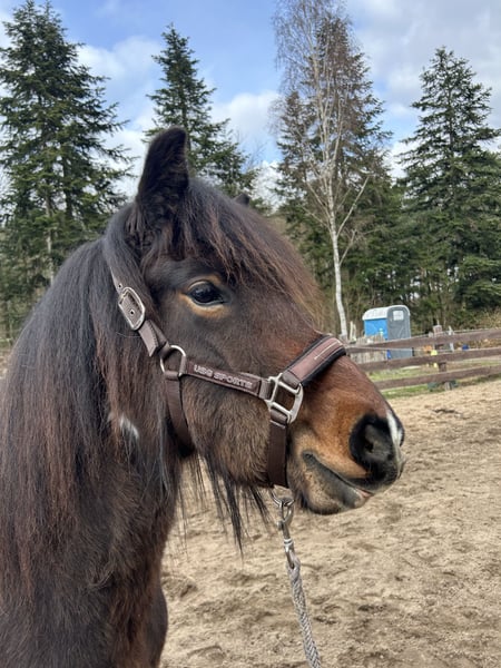 Ursprünglich hatten wir vor, eine Hobbyzucht aufzubauen, haben uns inzwischen jedoch umentschieden. Aus diesem Grund sucht unsere Isländerstute Dolly nun ein passendes neues Zuhause. Dolly ist seit zwei Jahren bei uns, altersgerecht gebaut und entwickelt sich altersgemäß sehr gut. Sie ist ein Braun-Mehrfachschecke mit wunderschönen kleinen Knopfaugen, passend zu ihrem kleinen schmalen Kopf. Dolly verfügt zudem über eine schöne und dichte Mähne, der Schweif ebenso. Im Umgang zeigt sich Dolly sehr menschenbezogen, lieb und unkompliziert. Sie sucht aktiv den Kontakt zum Menschen, kommt zuverlässig, wenn man sie ruft, und ist halfterführig. Der Schmied wird regelmäßig alle 8–12 Wochen vorgestellt, die Hufpflege ist für sie problemlos. Auch Tierarztbesuche verlaufen ruhig und entspannt. Dolly ist vollständig geimpft und erhält regelmäßig Mineralfutter sowie Fohlenmüsli. Im Sommer stand sie 24 Stunden auf der Weide, was sie sehr gut verträgt. Aktuell wird sie rund um die Uhr mit Heu versorgt. Bisher hatte Dolly noch keinen Kontakt zu Hengsten. Wir wünschen uns für Dolly ein liebevolles Zuhause, in dem sie weiterhin altersgerecht gefördert wird.