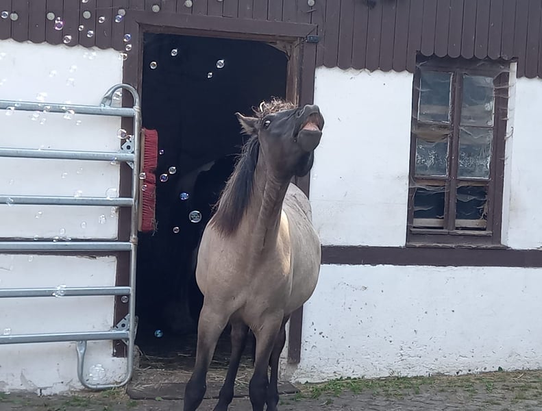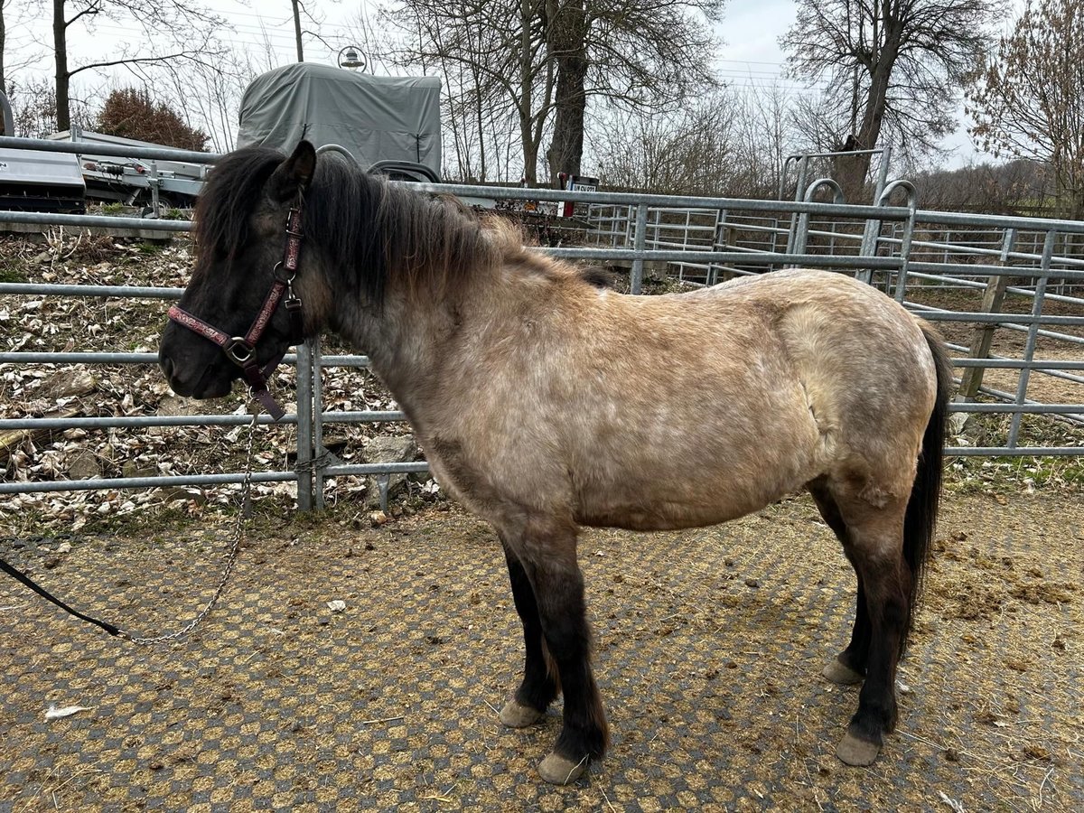 Zum Verkauf steht eine schicke 3 Jährige Isländerstute (Natürtölter) in der Farbe Blue Dun/ Graufalbe. Fina ist artig beim Hufschmied und läuft barfuß. Ist dem Alter entsprechend entwickelt, sowie stämmig gebaut und wird daher auch zu den Gewichtsträgern zählen. Sie lebt im Offenstall in einer gemischten Herde. Fina ist sehr menschenbezogen und bereit für weitere Ausbildung. Sicher ist sie aufgrund ihrer Abstammung auch für die Zucht interessant.