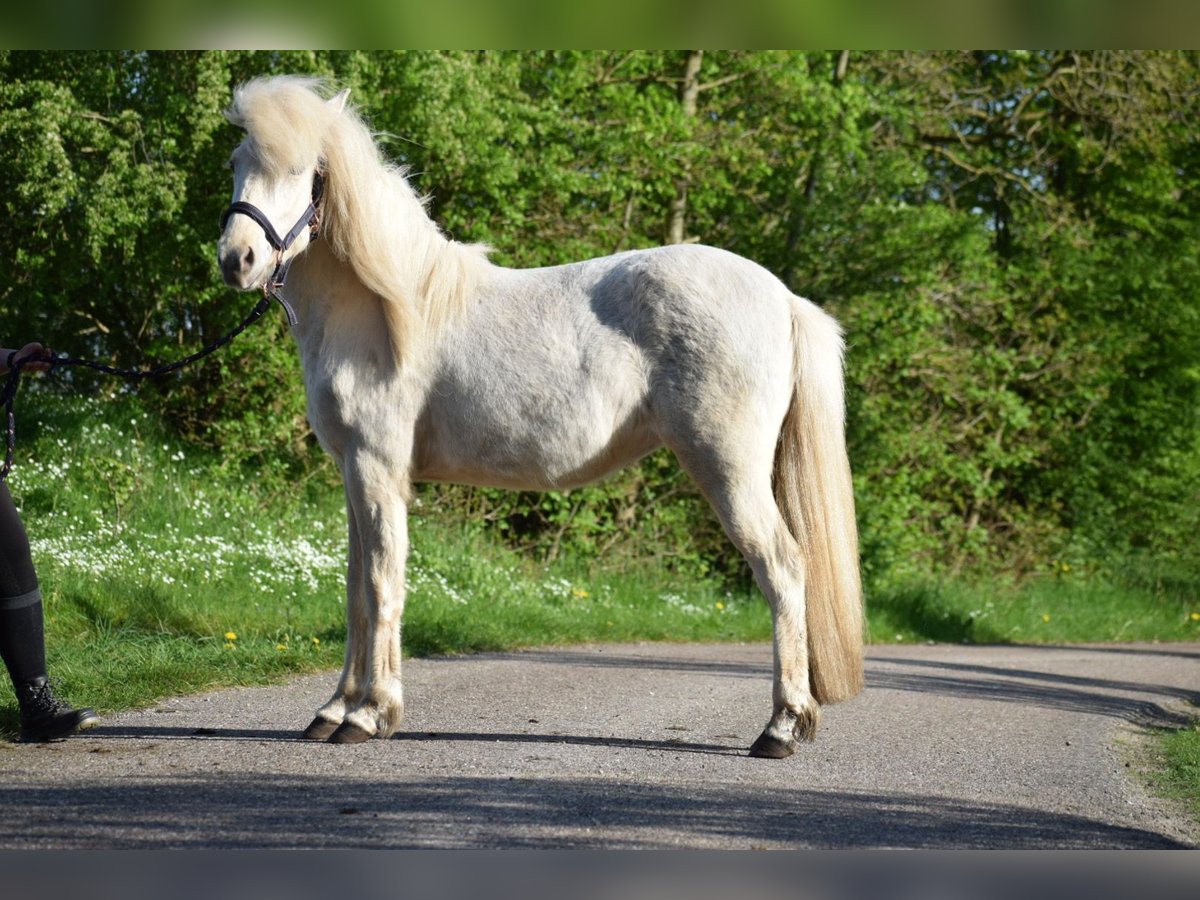 Kayla by Seimur, daughter of Sóley by Seimur, certified broodmare & the well-known Kjarkur by Seimur. She is 5 gaited and will reach a final height of approx. 1.44m. She already shows clearly separated, beautiful gaits and would be suitable for breeding, sport and leisure. Her color is called Fuchisabell (Palomino). Her temperament and character are impeccable and very calm. Kayla stands with her colleagues on the young mare pasture, 1 - 4 years old and next to the young stallions. Her pedigree can be seen. She can be viewed at any time. More details via PN.