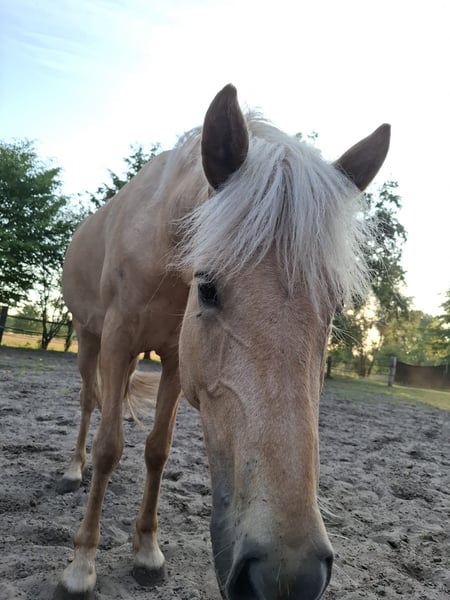 FEIF ID: IS2021287274 Beautiful young Icelandic mare in a special Isabell color looking for an experienced home. She is four years old and still has a lot to learn – a true diamond in the rough for someone with patience and experience in handling young horses. Currently standing at 1.40 m, she is well-behaved for grooming, tacking up, leading, and is happy to give hooves. She has not received much training yet, as she only arrived from Iceland in December 2024. She is likely five-gaited, with her current focus mainly on trot and canter. With proper training, she will surely develop into a very special riding horse for the higher-level leisure rider.