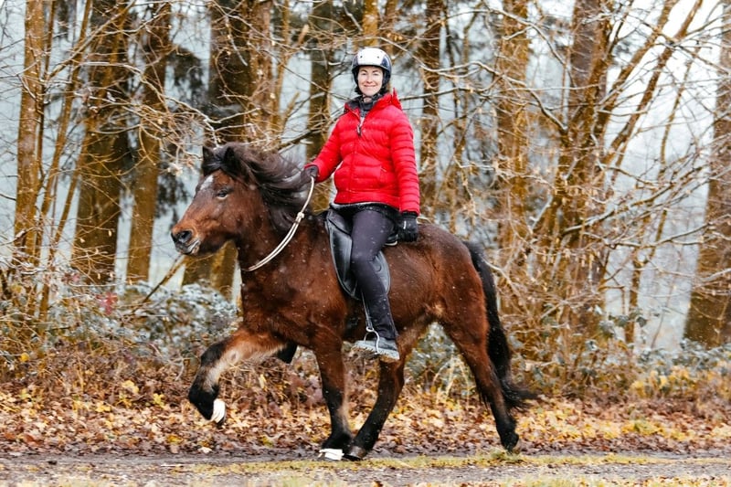 Tölt, Tölt, Tölt... Why are we taking pictures of the big brown mare DE2019234554 - Spes from Glashütte with a halter? Clearly, because she is very well-behaved. But mainly because Spes demonstrates such a rhythmically clear, simple, and fluid Tölt with a beautiful tempo. And of course, to show that she is completely comfortable with rein-overstrokes. Spes loves to Tölt alone or in company through the terrain; she is brave, confident, and always motivated. The other photos also show that Spes can trot and canter attractively. As her name, "the Extraordinary," already suggests, she simply brings an extraordinary amount of joy. www.gratzl.co.at