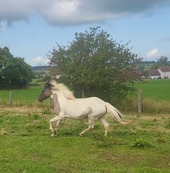 Vente d’un poney islandais – Isabellé, piebald, pure race, jument, née en 2019 Nous proposons à la vente une magnifique jument islandaise née en 2019. Elle se distingue par son joli pelage piebald et sa démarche agréable. Sociable et facile à monter, elle convient aussi bien pour les loisirs que pour la compétition. Elle possède d’excellentes origines et est enregistrée dans le stud-book 1. Cette année, elle a donné naissance à un poulain jument très grand et élégant, qui a été primé avec une médaille d’or. En tant que mère, elle a fait preuve d’un comportement exemplaire, ce qui rend sa reproduction très intéressante. Jusqu’à présent, elle a été en longe, où elle s’est montrée très facile à manipuler. En raison d’un renouvellement de stock et d’un manque de temps, elle est proposée à un prix inférieur à sa valeur. Pour toute question ou pour organiser une visite, n’hésitez pas à me contacter. Une visite est possible sur rendez-vous.