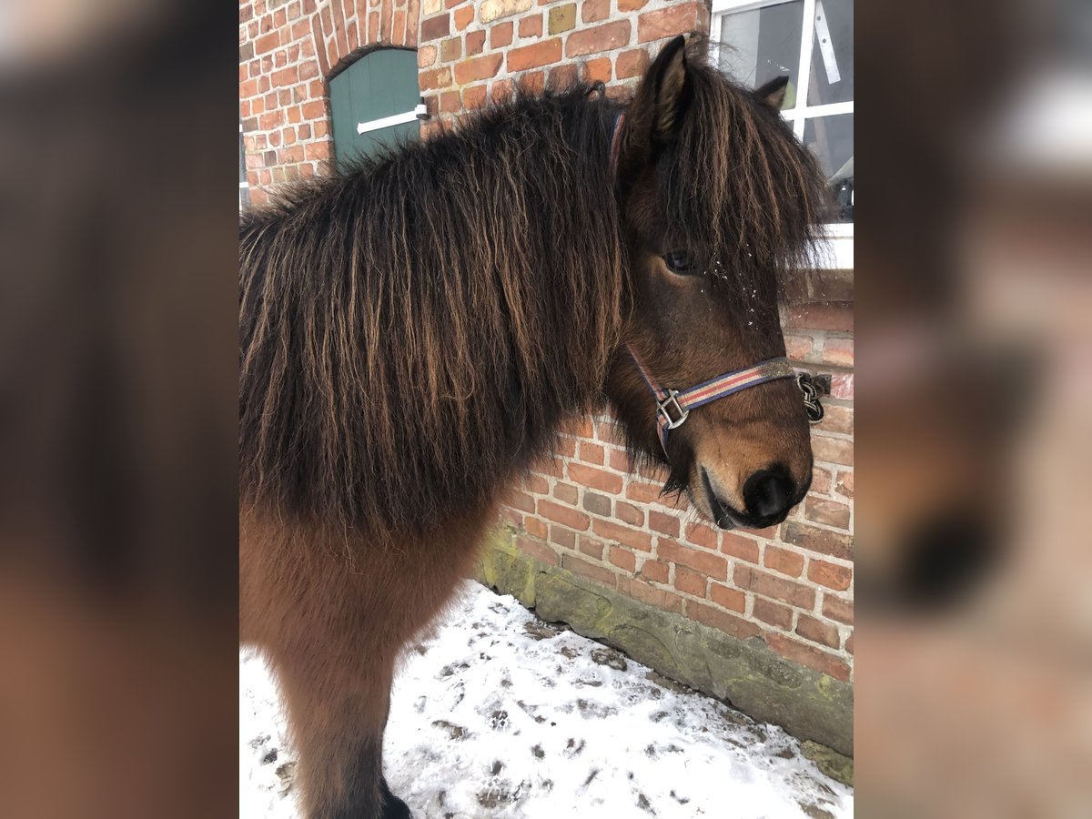 Árrós ist eine auffallend hübsche Stute mit langer Doppelmähne und einem stabilen Fundament, gesund und Scheckheft gepflegt. Sie kommt direkt aus 1. Hand, wurde von mir (IPZV-Trainer B) gezüchtet und nach der Grundausbildung im Rahmen der IPZV-Jungpferdebereiterprüfung schonend und sorgfältig ausgebildet. Beide Eltern sind Elitegeprüft: Ihr Vater ist der im Norden beliebte Vererber Vördur frá Arbae , der erfolgreich in Kinderklasse gestartet ist, was für den einwandfreien Charakter spricht. Die Mutter Árdis frá Kollaleiru war unsere Stammstute, die uns sehr viele schöne Reitpferde gebracht hat. Árrós bringt eine vielseitige Eignung mit: Sie hat 5 absolut klar getrennte Gänge, der Tölt ist ganz einfach zu reiten (auch für Umsteiger gut geeignet), der Schritt ist schreitend und entspannt, der Trab sehr sicher mit weiten Bewegungen, der Galopp braucht aktuell kräftebedingt etwas Tempo für die Balance, der Pass ist getestet und leicht abrufbar, aber nicht trainiert. Sie verfügt über eine stets hübsche Form, sehr gute Reaktion auf Reiterhilfen, ohne übersensibel zu sein. Ihr Temperament ist angenehm mit gutem Vorwärts, dabei unerschrocken und immer regulierbar (auch ohne Zügel über den Sitz). Sie beherrscht alle gängigen Dressurlektionen und Seitengänge. Im Gelände läuft sie unkompliziert alleine oder mit anderen, kennt dabei alles, was einem draußen begegnen kann und ist durch die nahe Bundesstraße hier besonders verkehrssicher. Sie war bereits sehr souverän auf Kursen unterwegs, auch einen Einsatz im Sport kann ich mir gut vorstellen. Durch die bewährte Abstammung eignet sich Árrós auch besonders für die Zucht. Im letzten Jahr hatte sie bereits ein schickes Fohlen, dabei eine unkomplizierte Trächtigkeit, Geburt und Mutterschaft. Seit dem Absetzen Anfang des Jahres wird Árrós wieder geritten. Besucht uns gerne - vielleicht kombiniert mit einem Trip an die nahe Ostsee. Árrós kann hier in der Halle und im Gelände ausprobiert werden. Preis steigt bei weiterem Training