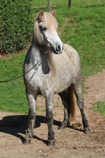 Gloria ist eine bildhübsche und talentierte Schimmelstute. Sie ist ein absolute Hingucker und fällt auf wegen ihre wunderschöne Augen und ihre schöne Mähne. Gloria ist in 2017 in Deutschland geboren und hat kein Exzem. Gloria hat eine gute Grundausbildung; wurde nur aus persönlichen Gründen nicht viel geritten. Sie ist von Ausbildungsstand gut reitbar; nur noch nicht so weit wie ein durchnittliches 7-Jähriges Pferd. Sie hat schöne Bewegungen mit viel taktklartem Tölt und gute Grundgangarten. Gloria ist offen und menschenbezogen. Unter dem Sattel ist lieb; muss aber noch einiges lernen. Sie ist ehrlich und würde nie was böses tun! Gloria hat ein mittleres Temperament; sie ist positief vorerst, wird aber nie zu schnell und bleibt bei der Reiter. Von Abstammung her ist Gloria absolut Top! Ihr Vater ist der bekannter Ómur frá Kvistum, ein sehr beeindruckter Hengst aus dem unter anderen auch der Tophengst Konsert frá Hofi - 8,72 - stammt. Ihre Mutter Carmen ist eine Tochter von der bekannte Schimmelhengst Kjarni frá Þjóðólfshaga 1 der unter anderen der Vater ist von Bragi frá Austurkoti. Bragi wurde mit Andreas Trappe bekannt und war erfolgreich auf viele Turniere. Diese Info ist natürlich haupsächlich interessant für Jemand der züchten möchte, aber auch so schön zu wissen was für eine interessante Blutlinie sie hat. Gloria hatte selbe bereits ein schönes Fohlen bekommen. Wir wünschen uns für Gloria Jemand der spass daran hat dieses hübsche und talentiertes Pferd weiter auszubilden. Mit dieses Pferd lohnt es sich da etwas Zeit zu investieren!Wir sehen Gloria als ein absolutes Traumpferd für die Zukunft! Stockmass: 1,41 Preis VB € 11.000,- Video und weitere Info gerne per Whatsapp: Hjerke 0049-151-40709772