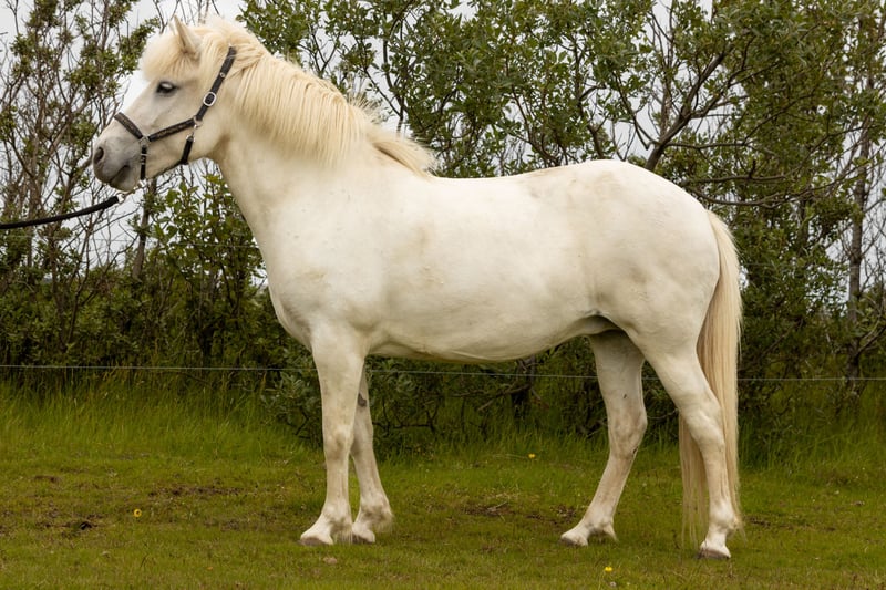 Beautiful and kind 8-year-old mare – born palomino, now grey This eye-catching mare has a special charm that turns heads. With her calm and friendly nature, she’s a pleasure to be around and easy to handle. She has four gaits and is suitable for leisure riding or further training. Born palomino, now grey. Optional: she can be covered by one of our stallions upon buyer’s request. Video available.