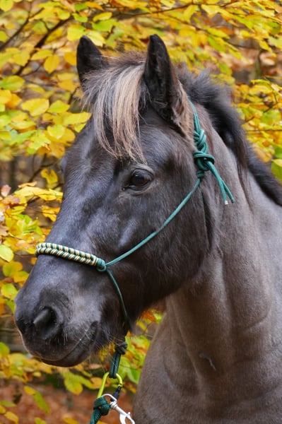 Síríus frá Dallandi Wallach, 1,50m groß, *kräftig gebaut* Farbe: Rappe ohne Abzeichen *2013 in Island Fünfgänger, viergängig geritten V: Arion frá Eystra-Fróãholti 8,91 (Ext 8,39 Re 9,25) !! VV: Sær frá Bakkakoti 8,62 (Ext 7,96 Re 9,05) !! M: Dýrleif frá Dallandi 8,09 (Ext 7,96 Re 8,17) !! Viergängerin MV: Dagfinnur frá Dallandi 7,79 (Ext 7,88 Re 7,71) Viergänger Sein Vater ist DER weltbekannte Arion frá Eystra-Frodholti, welcher die 10 für Tölt & langsamen Tölt und die 9,5 für Pass erhalten hat. Dýrleif seine Mutter erhielt als Viergängerin in ihrer FIZO die 9 auf Trab, Galopp & langsamen Tölt. Síríus ist der perfekte Partner für Reiter *im ambitionierten Freizeitbereich* sowie im Sport. Síríus hat dieses Jahr bereits seine ersten Turniererfahrungen gesammelt und Eiinzelnoten im Tölt und Galopp von 6,0 bekommen. Bei weiterem Training und Routine sind diese noch ausbaufähig. *Besonders hervorzuheben ist, dass Sirius in allen 4 Gängen immer Takt hat, was eine tolle Basis fürs Training oder Ausritte im Wald bietet.* Auch vom Boden ist Síríus gearbeitet hauptsächlich an der Longe und Doppellonge. Hier zeigt er sich sehr lernwillig und kooperativ. Er ist dem Menschen immer freundlich zugewandt, sehr verschmust und liebt krauleinheiten. Síríus ist seit Oktober 2023 in Deutschland und hat leichtes Ekzem entwickelt, welches aktuell mit Decke und minimalem Pflegeaufwand sehr gut im Griff ist. Síríus benötigt einen sicheren und erfahrenen Reiter, der ihm in unsicheren Situationen Vertrauen, Führung und die nötige Sicherheit geben kann. Síríus ist durch geimpft (Tetanus, Influenza und Herpes). Er ist Schmiede und verladefrom. Letzt Zahnarztkontrolle war im Juli 25 und wurde regelmäßig Physiotherapeutisch behandelt. Im Preis ist einiges an Zubehör (Sattel, Decken u.a. Eine rsh Decke) inkl. Preis ist Verhandelbar, für mehr Infos gerne anschreiben!