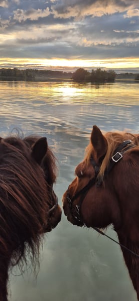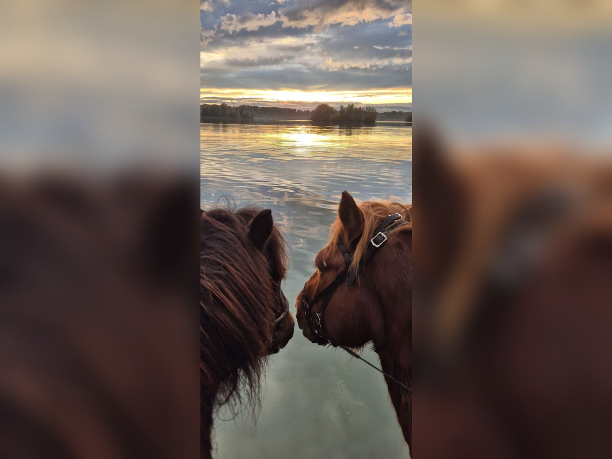 Suchen ab sofort eine versierte Islandpferdereiterin für unsere 5 Isis Die Pferde stehen in einer kleinen Herde im Offenstall am Ortsrand, an den sich ein herrliches Ausreitgelände anschließt. Du solltest ausreichend Erfahrung mit Gangpferden haben, für Anfänger sind unsere Pferde nicht geeignet. Dann solltest du mindestens 2 ( besser wären sogar 3 ) Tage die Woche, also auch am Wochenende, Zeit haben uns zu unterstützen die Pferde auf die umliegenden Koppeln zu stellen. An Sonn-und Feiertagen muss im Wechsel, ca. 1x pro Monat, das Paddock gemistet werden. Und auch die Koppeln müssen regelmäßig abgeäppelt werden. Da wir jetzt schon zu viert sind hält sich aber auch das in Grenzen. Evtl etwas mehr Arbeit, wenn 2 von uns in Urlaub sind. Ansonsten stehen die Pferde in Vollpension. Wir reiten gerne in der Gruppe aus. Leider haben wir keinen Platz zum Reiten am Hof, aber unsere Pferde sind das gewohnt und haben richtig Spaß daran