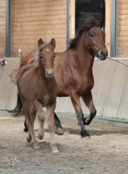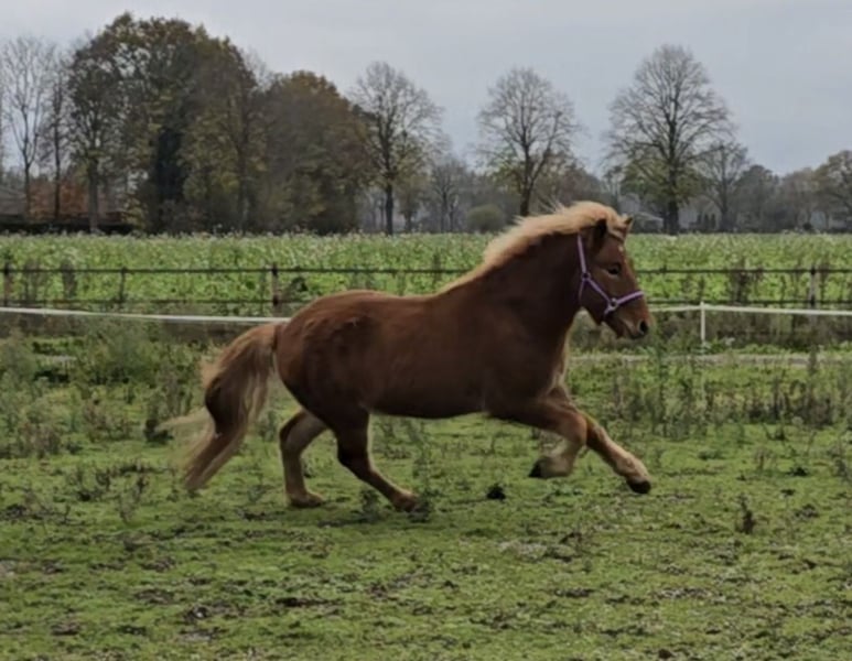 NL2022100190 - Gungnir frá Gróskuholti 4-jarige zeer grote ruin, vos met kol Vader: IS2011155574 - Mjölnir frá Bessastöðum (hooggekeurde IJslandse hengst met een 9 voor tölt, draf, telgang en karakter!! ) BLUP eindcijfer 107, met 112 voor telgang! Vader v vader: IS2002187662 - Álfur frá Selfossi (van IS1986186055 - Orri frá Þúfu í Landeyjum) (zeer hooggekeurde IJslandse hengst) BLUP eindcijfer 114, met 111 voor tölt en karakter! Gungnir wordt 4 jaar in mei en meet al ca. 1,42!! Hij zal nog verder doorgroeien en een grote ruin worden, met mooi behang. Hij is sterk gebouwd en een gewichtsdrager voor de toekomst, ook voor de grotere langere ruiter. Wij noemen hem de Grote Vriendelijke Reus, hij heeft een vriendelijk en lief karakter, komt altijd naar je toe voor een knuffel, is heel handzaam, is niet dominant en staat eerder onderaan in de kudde. Hij is braaf bij de hoefsmid en wordt regelmatig bekapt, jaarlijkse tandartscontrole doet hij braaf, hij wordt regelmatig ontwormd, entingen zijn op orde. Hij kent vaststaan, houdt van poetsbeurten en aandacht. Hij is makkelijk op de trailer, loopt altijd keurig mee aan het halstertouw. In de wei laat hij regelmatig z’n mooie gangen zien. We zoeken voor hem iemand die samen met hem verder wil groeien en met hem gaat beginnen aan zijn opleiding als hij uitgegroeid is. Gungnir heeft potentie voor de sport, gezien zijn afstamming en bouw, maar kan ook als luxe recreatiepaard zijn toekomst tegemoet gaan. Gungnir heeft geen eczeem. Vraagprijs voor Gungnir is 8.000,- euro. Wil je deze Grote Vriendelijke Reus met eigen ogen komen bewonderen of meer informatie? Neem dan contact met ons op via het contactformulier of email jockeylin@planet.nl