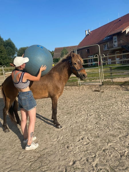 Zum Verkauf steht Hedinn, ein 5-jähriger Isländer Wallach, leicht angeritten und viergängig veranlagt. Er befindet sich altersgerecht am Anfang seiner Ausbildung und überzeugt vor allem durch seinen außergewöhnlich lieben und ausgeglichenen Charakter sowie raumgreifende und schwungvolle Bewegungen. Hedinn ist sehr menschenbezogen, freundlich und absolut unkompliziert im täglichen Umgang. Er lässt sich problemlos verladen, ist brav beim Hufschmied und zeigt sich insgesamt stets kooperativ und entspannt. Besonders hervorzuheben ist seine Unerschrockenheit und Neugier: Ob Plastikplanen, ungewöhnliche Gegenstände oder sogar Augen verbinden – Hedinn bleibt ruhig, vertraut seinem Menschen und macht alles gelassen mit. Genau diese Eigenschaften machen ihn zu einem idealen Familien- und Freizeitpferd. Ein junger Isländer mit viel Herz, der mit weiterer, ruhiger Ausbildung ein zuverlässiger Partner für viele Jahre wird – perfekt für Reiter, die Wert auf Charakter, Sicherheit und Freude am gemeinsamen Weg legen. Standort: Bad Belzig Preis: 6000€ VB Ernst gemeinte Anfragen willkommen – Hedinn wird nur in liebevolle, passende Hände abgegeben. Platz vor Preis