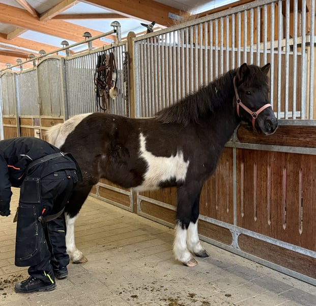 Wunderschöner großer Isländer Wallach, 5 Jahre, großrahmig, viergängig, supercool mit traumhafter Scheckung Manchmal kommt ein Pferd, das einfach alles mitbringt: Charme, Charakter, Talent, Größe und absolute Coolness. Dieser bildhübsche 5 jährige Island Wallach, in Deutschland geboren, begeistert nicht nur mit seiner wunderschönen harmonischen Scheckung sondern vor allem mit seinem einzigartig ausgeglichenen und freundlichen Wesen. Mit aktuell ca. 1,44 m Stockmaß und einem geschätzten Endmaß von etwa 1,48 m ist er ein sehr großer, kräftiger und großrahmiger Isländer, der auch für größere Reiter hervorragend geeignet ist. Er ist ein echtes Traumpferd für Freizeitreiter, ambitionierte Töltliebhaber und alle, die ein nervenstarkes Verlasspferd suchen. Charakter, einfach ein Goldschatz Dieser liebe Wallach ist ein Pferd, das durch seine innere Ruhe und Gelassenheit begeistert. Er ist: • supercool • ausgeglichen • menschenbezogen • freundlich • verspielt mit Artgenossen • bestens sozialisiert • neugierig und lernfreudig Besonders beeindruckend ist seine Einstellung zu allem Neuen: Er liebt es, unbekannte Situationen zu entdecken und bleibt dabei entspannt und souverän. Gerade im Gelassenheitsparcours zeigt er seine absolute Stärke. Hier ist er mit Freude, Neugier und großer Coolness bei der Sache und lässt sich nicht aus der Ruhe bringen. Ausbildung, sicher viergängig mit tollem Tölt Aktuell ist er klar viergängig geritten und überzeugt besonders durch seinen sicheren, angenehm zu sitzenden Tölt. Sein Galopp ist super durchgesprungen und leicht regulierbar. Er lässt sich am komplett durchhängenden Zügel im Galopp entspannt weiterreiten, ohne dabei das Tempo zu steigern. Das macht ihn gerade für Reiter interessant, die ein bequemes, leicht zu regulierendes und nervenstarkes Reitpferd suchen, welches ein gewisses Maß an Sicherheit vermittelt. Er zeigt dabei bereits: • eine gute Balance • viel Übersicht • eine tolle Arbeitseinstellung • entspannte Lauffreude • Talent für mehr Hier wächst definitiv ein Pferd heran, das nicht nur ein fantastisches Freizeitpferd sondern durchaus auch für weitere Förderung sehr interessant ist. Gelände, entspannt und zuverlässig Er war bereits mehrfach mit im Gelände und hat dort ebenfalls absolut überzeugt. Neue Wege, Umweltreize und unterschiedliche Situationen hat er durchweg souverän und easy gemeistert. Er zeigt sich mutig, gelassen, aufmerksam, sicher, unkompliziert. Schon jetzt ist er ein herrliches Ausreitpferd, das seinem Reiter ein tolles Gefühl von Sicherheit vermittelt. Haltung & Alltag Er ist in Deutschland geboren und kennt robuste 365-Tage-Draußenhaltung, was ihn zu einem gesunden, ausgeglichenen und hervorragend sozialisierten Jungpferd gemacht hat. Selbstverständlich ist er, schmiedefromm, verladefromm, ekzemfrei, unkompliziert im täglichen Handling und absolut verträglich in der Herde Fazit Ein außergewöhnlich sympathischer, großrahmiger und wunderschöner Islandwallach, der bereits jetzt durch Rittigkeit, Coolness, Töltqualität und Charakter begeistert. Ein Pferd für Menschen, die nicht einfach irgendeinen Isländer suchen, sondern einen echten Partner fürs Leben mit Talent, Verlassqualität und ganz viel Herz. Ein Traumpferd in jeder Hinsicht. Für einen Termin mit Vorreiten und Probereiten berechnen wir 40€, die beim Kauf des Pferdes selbstverständlich erstattet werden. Hierfür bitten wir Sie um Verständnis. Bei Interesse und Rückfragen melden Sie sich gerne telefonisch oder per WhatsApp unter 049(0)1709343872