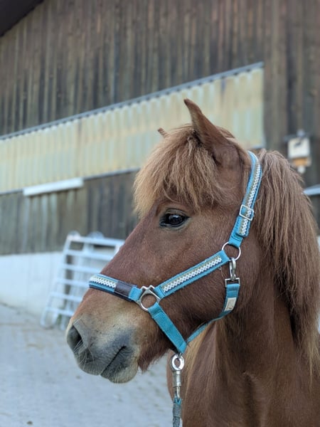 Blævar is an absolute dream horse for any leisure rider! He is always friendly, cooperative, and unflappable, and he enjoys being taken out. He has completed basic training and is familiar with free running, lunging, riding in-hand, riding in the arena, and trail riding (both alone and in pairs). No matter what you do with him, he is always completely uncomplicated. He has a medium temperament (not lazy and not hectic) and well-separated, comfortable gaits. He is a five-gaited horse and has been ridden in three gaits so far. We are now starting his tölt training. He has a harmonious build and is elegantly constructed with a stable foundation. He is free of eczema, and is good for the farrier and loading. Blævar was rated as a foal with 7.96 (Exterior 8.20; Interior 8.0; Gaits 7.8). Judge's statement: Diligent, attentive five-gaited foal with loose gaits, well-balanced movements, a lot of tölt, and a very elegant, well-muscled build. As a 4-year-old, he completed a conformation FIZO and received an average score of 7.5 and 8.0 (good) for all characteristics. Due to a minor flaw, the price has been significantly reduced. Blævar can be tried out at any time.