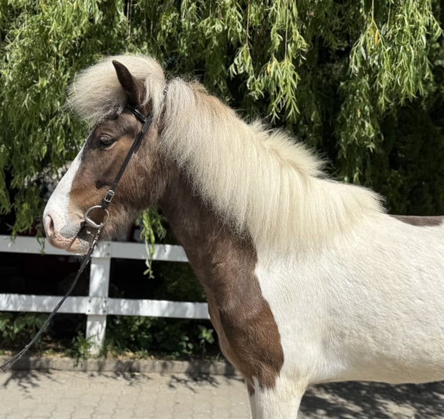 Froður vom Singergut Gelding, currently 1.43m Color: Brown wind-colored pinto *2020 born in Austria eczema-free, healthy✅ shod, dewormed, vaccinated✅ currently four-gaited ridden A true gem is looking for his perfect person! This exceptionally handsome gelding was born in Austria in 2020. He impresses not only with his rare special color (brown wind-colored pinto) but also with his remarkable gait quality and his balanced, friendly character. Naturally polite in handling, curious, fearless, and people-oriented – a true charmer who is ready to start his further training. Particularly noteworthy is his flowing movement, which combines a lot of tölt potential with clear structure & quality in all basic gaits. This gelding has everything it takes to develop into a promising sport horse for youth with further training – he is perfectly suited for children, teenagers, or light adults who value an honest, reliable, and willing horse. Fróður is the all-rounder with a special color focus – this gelding will capture hearts. ❤️ His price is subject to increase with further training. He can be visited and tried out with us in A-5221 Lochen am See by appointment.