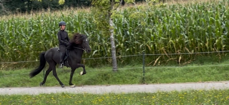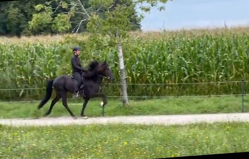 Verkaufspferd: Ragnar von Etzenberg Geboren: 2019 Vater: Arnaldur frá Narfastöðum (8,31) Mutter: Ragnhildur von Etzenberg FEIF-ID: DE2019184476 Der großrahmige Ragnar ist fünfgängig veranlagt, aktuell viergängig geritten. Er überzeugt mit einer klarer Gangtrennung, sehr gutem Takt und Raumgriff in allen Grundgangarten sowie einem leicht abrufbaren, taktsicheren Tölt mit guter Bewegung. Ragnar besticht durch seine freundliche und unkomplizierte Art im Umgang. Beim Ausreiten zeigt er sich unerschrocken, egal ob allein oder in der Gruppe. Seinen ersten Turnierstart absolvierte er in diesem Jahr souverän und erhielt 6,73 Punkte im Futurity Viergang. Aufgrund seiner Qualität in der Bewegung und seines verlässlichen Wesens eignet er sich sowohl als gehobenes Freizeitpferd als auch als Sportpferd. PK 17.000 - 20.000€ VHB Weitere Informationen und Videos gerne jederzeit auf Anfrage. Kontakt: Dorothee Drechsel, info@islandpferde-etzenberg.de
