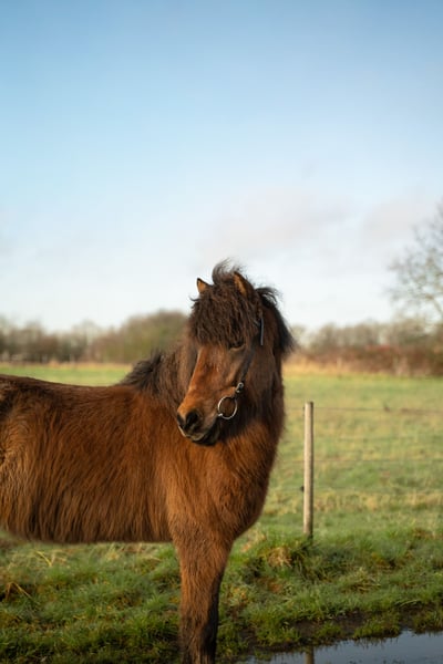 Bragi ist ein 6-jähriger, deutschgezogener Islandpferdewallach, mit einem Stockmaß von 1,46 m (+). Aufgrund seiner Größe deckt er auch größere Reiter sehr gut ab. Er begeistert mit einem gut zu händelnden Go und einer durchweg positiven Arbeitseinstellung, dabei vermittelt er stets ein angenehmes Reitgefühl, Bragi ist fünfgängig veranlagt, wird jedoch viergängig geritten. Er hat klar getrennte, gut regulierbaren Grundgangarten. Im Juni wurde er schonend angeritten. Ich kann ihn mir sehr gut als gehobenes Luxus-Freizeitpferd vorstellen – mit dem Potenzial, auch auf Turnieren eine gute Figur zu machen. Aufgrund seines jungen Alters und Ausbildungsstandes ist er aktuell jedoch kein Anfänger- oder Kinderpferd. Bragi möchte immer gefallen und arbeitet motiviert sowie aufmerksam mit. Ob im täglichen Training oder bei neuen Aufgaben – er zeigt sich neugierig, lernwillig und absolut kooperativ. Mit ihm kann man „jeden Quatsch machen“: Er bleibt stets klar im Kopf, unkompliziert und ehrlich im Umgang. Im Gelände zeigt er sich stets gelassen und souverän. Er geht sowohl alleine als auch in der Gruppe ins Gelände und bleibt dabei zuverlässig und entspannt. Zudem hat er bereits jüngere Jungpferde im Gelände begleitet. Auch im täglichen Handling ist Bragi ein echter Schatz. Er ist sozial, herdenverträglich und angenehm im Temperament. Selbstverständlich ist er schmiede- und verladefromm. Er ist Exzemfrei. Bragi ist das ideale Pferd für ambitionierte Freizeitreiter, die ein talentiertes, vielseitiges sowie ehrliches Pferd suchen – einen Partner, der Freude an der Zusammenarbeit hat und mit dem man gemeinsam wachsen kann. Standort: Nähe Bonn/Köln