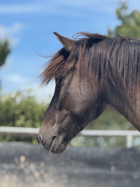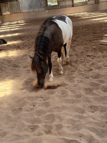 - 6 years old - from Iceland (no eczema) - 15.0 hh - four-gaited - pinto - Farrier and loading friendly He is mainly ridden for leisure and enjoys hacking. With further training, he could also be suitable for competitions. His tölt is very smooth to ride. Lunging and round pen work are not his preference; he prefers going out into the terrain. In handling, he is a very sweet and well-behaved horse. His teeth have been recently floated, and he is familiar with osteopathic treatments. Additional pictures and videos available upon request.