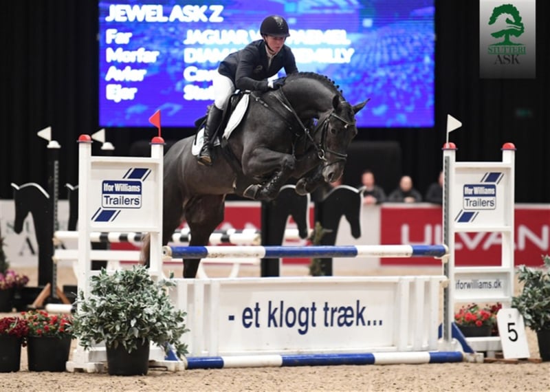 Jewel Ask Z is licensed at the Danish Warmblood and has passed its 14-day test with much praise for gallop and rideability. WFFS Status: Negative Cover tax: EUR 1.200,- VAT - Premium Stallion 2019 - International top pedigree in a class of its own! A beautiful stallion with an interesting, powerful pedigree, which we bought in winter 2018 from the Dutch breeders Kelly Pieck and Dirk Demeersman. Mother: Diamonds Billy Diamonds Billy has been successful in international 160cm jumping and has many placements at CSIO5* in 150cm. She was also in the final of the FEI Breeding Jumping Championship for 7-year-old horses in 2010. She brought among others Luigi, an 8-year-old stallion (licensed in AES) and up to 150cm itself internationally successful, as well as Little-Billy, an 8-year-old mare, who is placed up to 140cm several times. Father: Jaguar van Paemel Jaguar Van Paemel is a 9-year-old stallion by Cicero Z. He is licensed in Zangersheide and has gone internationally up to 160cm tests. Mother mother: Quassia De La Bonette Quassia De La Bonette has only one descendant, namely the mother of jewel Ask Z, Diamons Billy. The mare herself has gone up to 160cm tests internationally and placed several times in the CSIO5* in 150 cm. She was also in the final of the FEI Breeding Jumping Championship for 7-year-old horses in 2010. Father mother: Sissi Sissi already has a number of descendants with top performances, such as.B.: * Welshman II, which was already placed in the CSI4*/145 cm test. * Apache Van Paemel, also with international placements up to 145cm exams. * Gigolo Van Paemel, licensed stallion at the BWP and with international placements up to 135cm tests. * Inshallah Van Paemel, licensed stallion at AES * Jaguar Van Paemel, 9-year-old stallion, licensed in Zangersheide and has gone international up to 160cm tests (father of the Jewel Ask Z) * Kirr Royal Van Paemel, 8-year-old licensed stallion at the AES and has gone international up to 140cm tests. Mother mother: Midway De La Bonette Of Midway De La Bonette descendants should be mentioned: Aston Du Haras Des Barrag, which is placed internationally up to 150cm tests. Jewel Ask got the following description from the Körkommision: Large-framed, high-ranking, harmonious, suitably noble stallion with a lot of stallion embossing and of very good type. A bit narrow. Beautiful head. Suitably long, well-shaped and well-set neck. Long, slanted shoulder. Middellanger, marked withers. Smooth topline. Long, well-formed and muscular croup. The limbs fit and dry, the front shackles a bit steep, the hind shackles a bit soft. The ankle joints with little waving. Well-balanced and adjustable gallop. Jumps with good bascule and good hindquarters technology. Jumps with a lot of superficiality and foots well. Premium stallion. https://stutteriask.dk/DE/Hengste/Jewel Ask Z.aspx