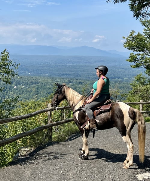 "AVAILABLE ON ONLINE HORSE AUCTION AT www DOT MagicHorseAuction DOT com BIDDING OPEN NOW thru TUESDAY | October 28TH! - BUY IT NOW AVAILABLE! *Final price will be determined on auction site* CONSIGNOR CONTACT INFO: Hannah Zorn 917-821-4140 LOCATION: Lebanon, NJ "Cadbury is a very fun horse looking for his next adventure partner. He is a chocolate silver dapple pinto spotted mountain horse gelding who is 14.2hh and 12 years old. He’s a go anywhere trail horse who’s been camping and trail ridden extensively. Good with dogs, livestock, bikes, cars, wheelchairs, rock climbers, and motorcycles. Goes over grates, logs, bridges, boulders and through brush, mud, or water without hassle. Bathes, ties, loads, trailers, crossties, lunges, stands for saddling, and bridles easily. Rides in front or in back, will go out alone and not herd bound and doesn't rush back to the trailer. No kick, buck, rear, bolt or strike, and very little spook. Gets along with mares and geldings, can be stalled or out 24/7. He's a forward horse and is completely safe for an intermediate rider or would be an excellent horse for a confident kid who can ride. He blows occasionally when not under saddle but it’s just a sound effect. He’s not worried and he doesn’t do it under saddle. I ride him in a hackamore but can be ridden in a bit too. I've owned him 2 1/2 years, and he's had no soundness or health issues. He's UTD on teeth, worming, and rabies vaccination. Has a scar on his rear cornet but been seen by my vet and it's cosmetic only and causes no issues. He's had professional training in the past and is a fun trail machine!