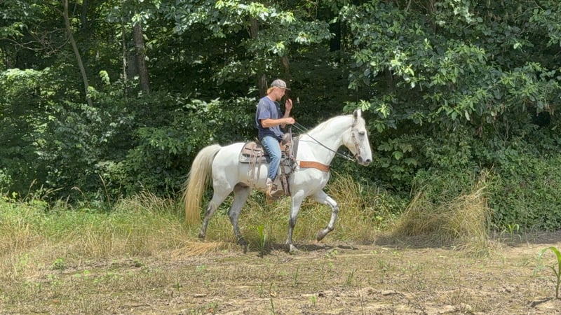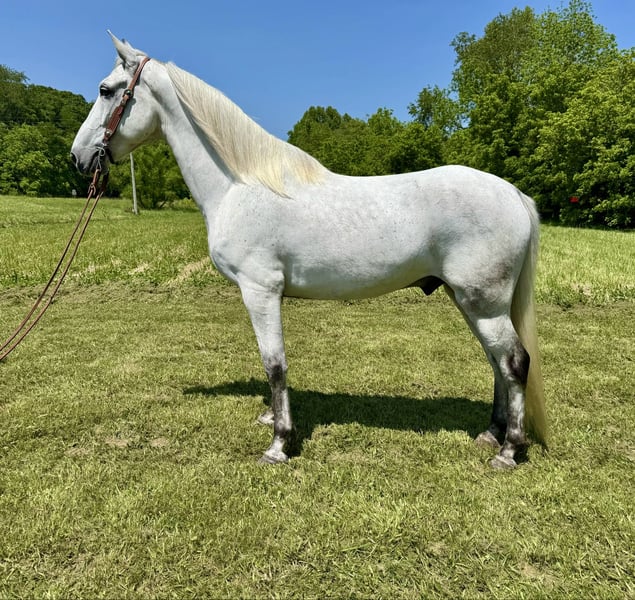 "AVAILABLE ON ONLINE HORSE AUCTION AT www DOT MagicHorseAuction DOT com BIDDING OPEN NOW thru TUESDAY | JULY 22nd - BUY IT NOW AVAILABLE! *Final price will be determined on auction site* CONSIGNOR CONTACT INFO: Zach Brandenburg 513-508-3684 LOCATION: Grassy Creek, KY Stone is a handsome gray ky mtn gelding, he is 7 years old and stands 15.2 hands with a nice stout build, this is an attractive gelding that built to last and gives his rider a good smooth ride every trip! Stone is sure footed, confident and traffic safe. He has been in several states trail riding including week long trips at a time. Stone rides in groups or out alone, he has great ground manners and is very easy to work with. Stone is a flashy, forward moving horse that knows his job but is respectful and responsive and is happy to walk when asked to do so.