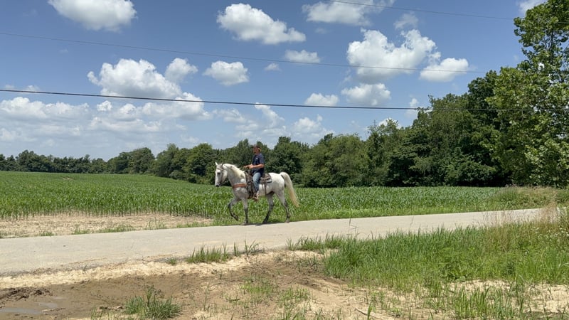 "VERFÜGBAR BEI DER ONLINE-PFERDEAUKTION UNTER www DOT MagicHorseAuction DOT com DIE AUKTION IST JETZT GEÖFFNET BIS DIENSTAG | 22. JULI - SOFORTKAUF MÖGLICH! *Der endgültige Preis wird auf der Auktionsseite festgelegt* KONTAKTINFORMATIONEN DES EINLIEFERERS: Zach Brandenburg 513-508-3684 STANDORT: Grassy Creek, KY Stone ist ein hübscher grauer Kentucky Mountain Wallach, 7 Jahre alt und 15,2 Hände groß mit einem kräftigen Bau. Dies ist ein attraktiver Wallach, der für die Dauerhaftigkeit gebaut ist und seinem Reiter bei jedem Ritt eine angenehme, sanfte Fahrt bietet! Stone ist sicherfüßig, selbstbewusst und verkehrssicher. Er hat in mehreren Bundesstaaten beim Trailreiten teilgenommen, einschließlich einwöchiger Ausritte. Stone reitet in Gruppen oder alleine, er hat großartige Manieren am Boden und ist sehr einfach im Umgang. Stone ist ein auffälliges, vorwärtsbewegendes Pferd, das seine Aufgabe kennt, aber respektvoll und reaktionsschnell ist und gerne geht, wenn man ihn darum bittet."