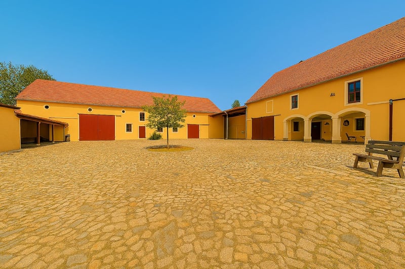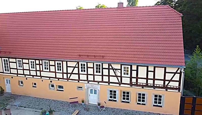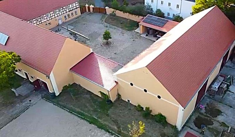 Nieuw gerenoveerd, beschermd monumentaal driezijdig boerderijcomplex in Canitz bij Riesa, met eigen rijbaan en uiterst moderne voorzieningen! Uniek landgoed met geschiedenis en innovatieve techniek. Dit bijzondere driezijdige erf in Canitz bij Riesa combineert historische bouwmaterialen uit circa 1790 met modern wooncomfort en hedendaagse technologie. In de afgelopen jaren is hier een indrukwekkend landgoed ontstaan, dat beschikt over luxe woonruimtes, een moderne rijbaan met stal en andere bedrijfsruimtes, een ruime schuur en extra grote terreinen voor diverse woon- of zakelijke doeleinden. Daarnaast is het eigendom bijna volledig zelfvoorzienend dankzij twee zonnepaneleninstallaties met batterijsystemen en eigen wallboxen, twee bronnen voor waterwinning op het terrein en een hybride verwarmingssysteem (pellet/hout) met buffertank en zonne-energie. Het gehele erf is tussen 2018 en 2022 beschermd gerenoveerd volgens monumentenrichtlijnen, inclusief de buitenaanleg met stal en rijbak. Zo is hier de perfecte combinatie van comfortabel wonen en het realiseren van een paardenliefhebbersdroom gerealiseerd, wat heeft geleid tot een uitzonderlijk object voor liefhebbers. Perceel – 14.860 m² Het ruime perceel heeft een totale oppervlakte van circa 14.860 m². Het woonhuis (ca. 1790) beslaat ongeveer 260 m² woonoppervlak, het middenstuk (ca. 1850) bevat een circa 120 m² grote zelfstandige woonunit, werkplaats, kalkovens met paardenstal (3-4 boxen) en andere bedrijfs- en opslagruimtes, plus een extra uitbreidingsreserve op de zolder. De derde vleugel van het erf bestaat uit de ruime schuur (ca. 1890) met circa 400 m² vloeroppervlak. Twee grote carports met respectievelijk drie en twee parkeerplaatsen, voorzien van wallboxen, maken het indrukwekkende erf compleet. Via een kleine brug bereikt men het terrein en via een videogestuurd poortensysteem komt men op de uitgestrekte, met natuursteen geplaveide binnenplaats. Achter het markante erf strekt het grote perceel zich uit, inclusief een natuurvijver (diameter 30 m, met vijverfolie) met steiger, buitenzitje met barbecue en een massief paviljoen (bouwjaar 2015). De achterliggende gebieden zijn de afgelopen jaren grondig heringericht: in 2022/23 is een volledig overdekte, vorstvrije all-weather paddock (7 x 14 m) aangelegd, aansluitend op een circa 600 m² grote uitloop met Ridcon-platen. Daarnaast is er een eigen rijbak van 70 x 30 m, omringd door meerdere weilanden. Deze zone is voorzien van irrigatiesystemen en volledig omheind. Twee bronnen zorgen voor een onafhankelijke watervoorziening, beheerd via automatische sproeisystemen. Energie & techniek – zelfvoorzienend en slim Het woonhuis is voorzien van binnenisolatie en een op maat ontworpen verwarmingssysteem, met energieklasse B (66,46 kWh). Het landgoed is energetisch zelfvoorzienend en uitgerust met de nieuwste technologie: • Twee zonnepaneleninstallaties (elk 10 kWp) en twee batterijsystemen (totaal 30 kWh) • Fröling S4 Turbo hout/pellet-ketel met 2.850 liter buffertank • Zonne-thermie voor warm water en een 1.000 liter friswaterbuffer • 5,5 kW noodstroomaggregaat voor zelfstandige back-up • Slimme thermostaat- en verwarmingsregeling voor optimale energiebesparing • WLAN-access points over het hele terrein • Starlink highspeed internet • Volledige videobewaking (kantelbaar, IR-geschikt) • Op afstand bedienbare irrigatie- en sproeisystemen • Balkenhoofdsverwarming voor de vakwerkstructuur van het woonhuis • Een wallbox voor elektrisch laden Woonhuis ca. 250 m² woonoppervlak • Drievoudig geïsoleerde houten ramen en binnenisolatie van de muren • Diverse historische details behouden, zoals originele tegels uit 1900 in de entree, gedeeltelijk zichtbare metselwerk en bewerkte zichtbalken • Vloerverwarming op de begane grond, traditionele wandverwarming op de bovenverdieping • Ruime en moderne indeling (woonkamer + 6,5 kamers) • Hoogwaardige eikenhouten vloer in de gehele bovenverdieping • Twee houtkachels (woonkamer en woonkeuken) • Drie daglichtbadkamers, inloopkast, wasruimte met bijkeuken • Keuken en badkamers met hoogwaardige apparatuur en componenten • Extra grote hobby-, feest- of sportkamer op de begane grond • Mogelijkheid tot splitsing in 2-3 wooneenheden • Begane grond is uitgegraven en opnieuw opgebouwd, het huis is drooggelegd Middendeel met zelfstandige woonunit en bedrijfsruimtes, circa 120 m² • 3-kamerappartement op de eerste verdieping met ruime indeling en eigen ingang • Open woon-/eetkamer met schuifdeuren • Badkamer met daglicht en bijkeuken • Extra opslagruimte mogelijk in de zolder Stallen ca. 150 m² plus circa 250 m² opslagruimte • 3-4 grote paardenboxen • Verwarmde waterleidingen en buitenwasplaats • Opslagzolder en werkplaats met historische gewelven ca. 150 m² • Extra ruimte als grote garage te gebruiken • Uitbreidingsreserve op zolder en in de bovenverdieping circa 100 m² Schuur ca. 400 m² vloeroppervlak • Vier grote toegangshekken voor in- en doorrit • Extra opslagruimte mogelijk door het plaatsen van tussenwanden • Kleine kelder, opslagruimtes en overdekte buitenruimtes • Kraaninstallatie, transportsysteem Paardenfaciliteiten • Rijbak (30x50 m) met irrigatie • Overdekte stal (7x14 m) met verwarmde drinkbakken • 600 m² uitloop met vaste omheining, vier weilanden en stevige afrastering • Paardvriendelijke boomgaard Vijvercomplex • Natuurvijver met vijverfolie • Twee toevoerleidingen en een pompinstallatie voor beekwater • Steiger met terrassen en zitplaatsen • Massief paviljoen met mediapunten (mogelijk als gastenverblijf) • Vijver met visbestand, bijvoorbeeld grasskarper Aanvullende inventaris • Houtvoorraad voor 2-3 jaar • Elektrische wiellader, zitmaaier, aanhanger • Diverse machines en accessoires Dit aanbod betreft een zakelijk object. Bij aankoop wordt een makelaarscourtage van 3,57% van de koopprijs in rekening gebracht door Planethome.