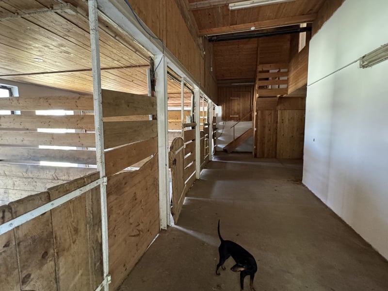 Dieser außergewöhnliche, ehemalige Bauernhof in idyllischer Alleinlage vereint ländlichen Charme mit einer hervorragenden Anbindung an den Großraum München. Das Anwesen befindet sich in der Gemeinde Reichertsheim im Landkreis Mühldorf am Inn und liegt eingebettet in eine ruhige, naturnahe Umgebung zwischen Wasserburg am Inn und Mühldorf. Das ursprünglich um 1900 errichtete Gebäude wurde im Jahr 1984 neu aufgebaut und aufwendig saniert. Heute präsentiert sich das Anwesen in einem sehr gepflegten Zustand mit einer Wohn- und Nutzfläche von insgesamt ca. 300 m², inklusive einer separaten Einliegerwohnung. Die Raumaufteilung umfasst insgesamt neun Räume sowie sechs Badezimmer bzw. Gäste-WCs und bietet damit großzügige Platzverhältnisse sowohl für Familien als auch für Mehrgenerationennutzung oder Wohnen und Arbeiten unter einem Dach. Ein besonderes Highlight ist die hochwertige Ausstattung des Hauses. Der Wohnbereich mit gemütlichem Grundofen schafft eine behagliche Atmosphäre, während das große Badezimmer mit integrierter Dampfsauna zusätzlichen Wohnkomfort auf hohem Niveau bietet. Beheizt wird das Objekt über eine moderne und effiziente Holzpelletheizung. Das rund 2,5 Hektar große Grundstück eröffnet vielfältige Nutzungsmöglichkeiten und ist insbesondere für Pferdehaltung ideal geeignet. Vier Pferdeboxen, mehrere Offenstallbereiche sowie drei großzügige Paddockflächen mit befestigten Laufflächen sind bereits vorhanden. Eine der Flächen eignet sich hervorragend für den Ausbau zu einem Reitplatz. Ergänzt wird das Anwesen durch zugehörige Weideflächen, einen gepflegten Gartenbereich mit Naturteich sowie eine kleine Gartenhütte. Weitere Nebengebäude, unter anderem mit Heu- und Lagerflächen, runden das Angebot ab. Trotz der ruhigen, ländlichen Lage ist die Infrastruktur ausgezeichnet. Der Markt Haag in Oberbayern mit sämtlichen Einkaufsmöglichkeiten, Schulen und ärztlicher Versorgung ist nur ca. 3 km entfernt. Dorfen mit S-Bahn-/DB-Anschluss sowie der Autobahn A94 erreichen Sie in etwa 7 km. Die Fahrzeit nach München beträgt rund 30 Minuten. Das Objekt ist kurzfristig bezugsfrei und bietet eine seltene Gelegenheit für Naturliebhaber, Pferdehalter oder Menschen mit dem Wunsch nach großzügigem Wohnen im Grünen bei gleichzeitig guter Erreichbarkeit urbaner Zentren. ________________________________________ Fakten auf einen Blick •Objektart: Ehemaliger Bauernhof / Anwesen •Baujahr: ca. 1900 •Neuaufbau / Sanierung: 1984 •Adresse: 84437 Reichertsheim, Landkreis Mühldorf am Inn •Wohn-/Nutzfläche: ca. 300 m² (inkl. Einliegerwohnung) •Grundstücksfläche: ca. 2,5 ha •Räume gesamt: 9 •Badezimmer / Gäste-WC: 6 •Heizung: Holzpelletheizung •Bezugsfrei: kurzfristig Pferde- & Außenanlagen: •4 Pferdeboxen •3 große Paddockflächen / Offenställe •Befestigte Laufflächen (Hübner-Lee) •Weideflächen •Ausbaufläche für Reitplatz vorhanden Weitere Ausstattungsmerkmale: •Großer Wohnraum mit Grundofen •Großes Bad mit Dampfsauna •Garten mit Naturteich •Nebengebäude und Heulager •Einliegerwohnung Lage & Anbindung: •Ca. 30 Minuten nach München •3 km nach Haag i. OB •7 km nach Dorfen (DB- & A94-Anschluss) Sonstiges: Dieses Objekt bieten wir in Kooperation mit einem unserer Netzwerk-Kunden an. Für die Richtigkeit der Angaben in dieser Anzeige sind wir nicht verantwortlich. Hiermit bestätigen Sie, dass wir berechtigt sind, Ihre Kontaktdaten an den Netzwerk-Kunden weiterzuleiten.