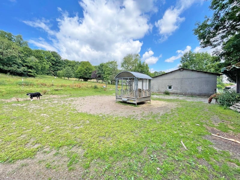 Inmitten der reizvollen Landschaft Osthessens, im Landkreis Fulda, befindet sich dieses außergewöhnlich großzügige private Anwesen in ruhiger Ortsrandlage. Das weitläufige Grundstück mit über 28.000 m² bietet ideale Voraussetzungen für Pferdehaltung, Tierliebhaber und Menschen, die ein hohes Maß an Platz, Komfort und Privatsphäre schätzen, ohne auf eine gute Anbindung verzichten zu müssen. Das Anwesen wird durch ein äußerst großzügiges Wohnhaus aus dem Baujahr 1978 geprägt, das laufend modernisiert und technisch auf einen sehr hohen Standard gebracht wurde. Mit rund 330 m² Wohnfläche sowie zusätzlichen ca. 240 m² Nutzfläche bietet das Haus ein außergewöhnliches Raumangebot und überzeugt durch moderne Haustechnik, zeitgemäße Ausstattung und zahlreiche komfortable Ausstattungsdetails. Eine separate Einliegerwohnung im Dachgeschoss mit eigener Dachterrasse eröffnet vielfältige Nutzungsmöglichkeiten, etwa für Gäste, Mehrgenerationenwohnen oder zur teilweisen Vermietung. Die Raumaufteilung ist klar strukturiert und funktional gestaltet: Im Untergeschoss stehen mehrere Zimmer, Mehrzweckräume sowie Bäder zur Verfügung, die sich ideal für Hobby, Wellness oder Fitness eignen. Das Erdgeschoss bildet mit großzügigen Wohn- und Essbereichen, Küche und Nebenräumen den zentralen Lebensmittelpunkt. Das Dachgeschoss ergänzt das Raumangebot um weitere Zimmer sowie eine vollwertige Wohneinheit. Für Pferdehalter bietet das Anwesen hervorragende Bedingungen. Ein ca. 180 m² großer Offenstall für etwa fünf Pferde, Heulager, Mistplatz sowie weitläufige Wiesenflächen schaffen optimale Voraussetzungen für eine artgerechte Tierhaltung. Ein Reitplatz, der derzeit als Fußballplatz genutzt wird, sowie ein 18 m Roundpen sind ebenfalls vorhanden. Abgerundet wird das Angebot durch eine außergewöhnlich umfangreiche Infrastruktur: Doppelgarage, mehrere Carportstellplätze, separate Garagen für Motorrad und Fahrräder, Werkstatt, Außenpool, Sauna- und Fitnessbereich sowie Videoüberwachung. Ein bestehender Innenpool kann bei Bedarf mit geringem Aufwand wieder in Betrieb genommen werden. Weitere Nebengebäude wie Hundezwinger oder Hühnerstall unterstreichen die Vielseitigkeit dieses Anwesens. Dieses Anwesen vereint ländliche Ruhe, moderne Wohnqualität und professionelle Voraussetzungen für Tierhaltung und Freizeitgestaltung und bietet damit ein außergewöhnliches Gesamtpaket in attraktiver Lage. ________________________________________ Daten & Fakten auf einen Blick: •Lage: Osthessen, Landkreis Fulda, 36154 Hosenfeld / Jossa •Grundstück: ca. 28.109 m² •Wohnfläche: ca. 330 m² •Nutzfläche: ca. 240 m² •Baujahr: 1978 Besonderheiten Wohnen: oEinliegerwohnung im Dachgeschoss mit Dachterrasse oSehr moderne Ausstattung und Haustechnik oUmfangreiche Neben- und Funktionsräume Raumaufteilung: oUntergeschoss: -3 Zimmer -2 Mehrzweckräume -2 Bäder -1 WC oErdgeschoss: -2 Zimmer -Wohnzimmer -Esszimmer -Küche -Hauswirtschaftsraum -1 Bad -1 WC oDachgeschoss: -2 Zimmer -Wohn- / Esszimmer -Küche -Hauswirtschaftsraum -Bad Pferdehaltung & Außenanlagen: oOffenstall ca. 180 m² für ca. 5 Pferde oHeulager oMistplatz oReitplatz (derzeit als Fußballplatz genutzt) o18 m Roundpen Stellplätze & Nebengebäude: oDoppelgarage o4 Carportstellplätze oMotorradgarage oFahrradkeller oWerkstatt Freizeit & Sonstiges: oAußenpool oSauna- und Fitnessraum oInnenpool vorbereitbar oHundezwinger bzw. Hühnerstall oVideoüberwachung .................. Sonstige Hinweise: Dieses Objekt bieten wir in Kooperation mit einem unserer Netzwerk-Makler an. Mit Ihrer Kontaktanfrage akzeptieren Sie, dass Sie sich für dieses Objekt interessieren und ein Expose von unserem Netzwerk-Makler anfragen. Ebenso bestätigen Sie die Provisionsvereinbarungen zwischen unserem Netzwerk-Makler und Ihnen, die im Falle eines notariell bestätigten Kaufvertrages rechtskräftig werden. Ebenso bestätigen Sie, dass wir berechtigt sind, Ihre Kontaktdaten an den Netzwerk-Makler weiterzuleiten. -------------------- Lage: Das Anwesen befindet sich in Osthessen, im Landkreis Fulda, in der Gemeinde Hosenfeld, Ortsteil Jossa. Die Lage am ruhigen Ortsrand verbindet naturnahes Wohnen mit einer sehr guten Erreichbarkeit und gewachsener Infrastruktur. Umgeben von Wiesen und Feldern bietet das Grundstück viel Ruhe, Freiraum und Privatsphäre, ohne vollständig abgeschieden zu sein. Die Verkehrsanbindung ist als gut zu bezeichnen. Über die umliegenden Land- und Kreisstraßen besteht eine schnelle Verbindung in die umliegenden Orte sowie in die Kreisstadt Fulda, die in kurzer Fahrzeit erreichbar ist. Fulda bietet neben einem ICE-Bahnhof eine hervorragende Anbindung an das überregionale Verkehrsnetz sowie eine umfassende Infrastruktur mit Kliniken, weiterführenden Schulen, Hochschulen, Einkaufsmöglichkeiten und kulturellen Angeboten. Die Autobahnen A7 und A66 sind ebenfalls zügig erreichbar und ermöglichen eine schnelle Anbindung in Richtung Frankfurt am Main, Kassel und Würzburg. Einkaufsmöglichkeiten, Ärzte, Schulen und Kindergärten befinden sich sowohl in Hosenfeld als auch in den angrenzenden Gemeinden und sind bequem mit dem Auto erreichbar. Die Kombination aus ruhiger Ortsrandlage, großzügigen Flächen und guter verkehrlicher Anbindung macht diese Lage besonders attraktiv für Familien, Pferdehalter, Selbstständige und Pendler, die ländliche Ruhe mit urbaner Erreichbarkeit verbinden möchten.