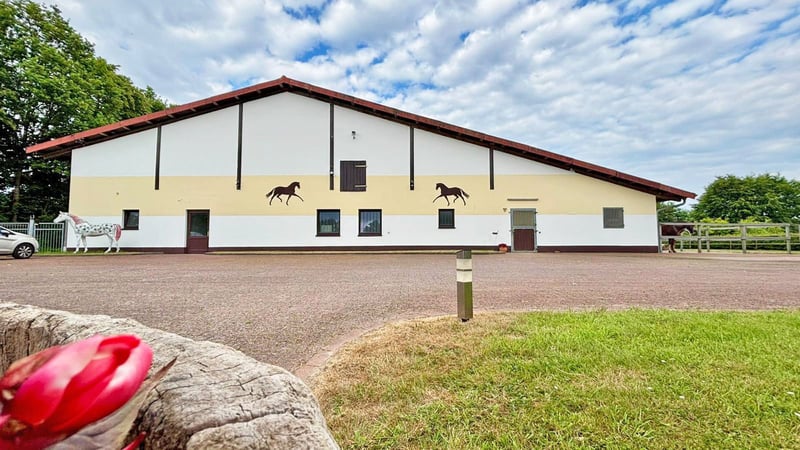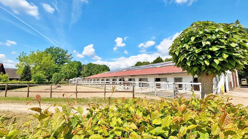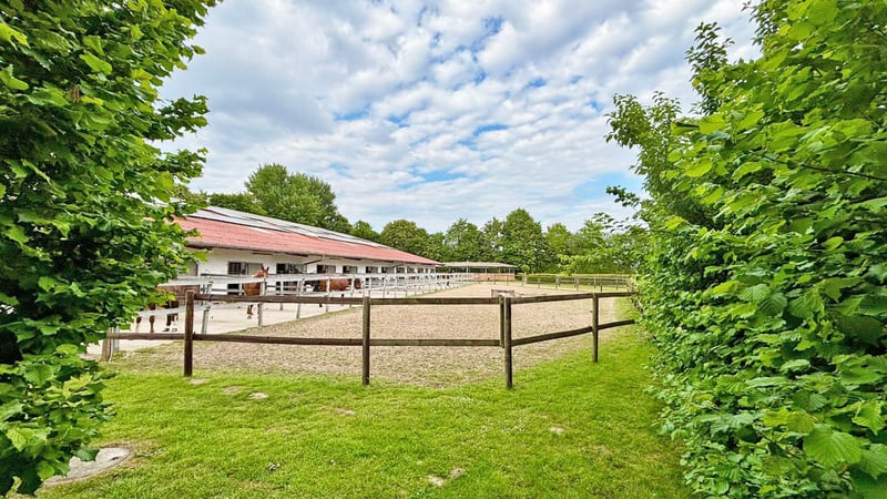 Preis auf Anfrage! In attraktiver, unverbaubarer Lage im Wohngebiet von Bielefeld präsentiert sich diese außergewöhnlich gepflegte Reitanlage auf einem weitläufigen Grundstück von ca. 60.000 m². Die Kombination aus hochwertigem Wohnkomfort, professioneller Reitinfrastruktur und lukrativen Zusatzmöglichkeiten macht dieses Anwesen zu einer seltenen Gelegenheit für Pferdeliebhaber, Investoren oder Betreiber. Die Gesamtwohnfläche von ca. 530 m² verteilt sich auf drei Einheiten und bietet flexible Nutzungsmöglichkeiten – vom Mehrgenerationenwohnen bis hin zur Kombination von Wohnen und Vermietung. Video: https://youtu.be/_25ZtxkpnuQ Wohnbereich im Überblick: Hauptwohnung (ca. 340 m²): Großzügige Diele, 6 Zimmer, offene Einbauküche, Schlafzimmer mit integrierter Sauna, Badezimmer, Gäste-WC, Abstellraum sowie ein separates Gästezimmer mit eigenem Bad und Eingang Studio (ca. 110 m²): Aktuell leerstehend – ideal für individuelle Nutzung oder Vermietung Weitere Wohnung (ca. 70 m²): Derzeit vermietet (bei Bedarf kündbar) Ausstattung & Highlights: Gehobene Ausstattung, gepflegter Zustand Voll unterkellert Kamin vorhanden Sauna im Wohnbereich Zentralheizung (Öl) Bodenbeläge: Fliesen Fernblick Reitanlage & Außenbereich: Reithalle (20 x 40 m) mit Reiterstube inkl. Damen- und Herren-WC Außenreitplatz (20 x 60 m) mit hochwertigem Dressurboden Rennbahn (ca. 650 m Länge) Überdachte Führanlage für 6 Pferde Wasch- und Rotlichtanlage für Pferde Insgesamt 23 Pferdeboxen: 13 große Boxen mit Paddocks in der Halle 7 Boxen im Außenstall Offenstall für 3 Pferde Scheune zur Lagerung von Heu und Stroh Trecker vorhanden Grundstück & Flächen: Gesamtfläche: ca. 60.000 m² Davon ca. 2 ha Ausgleichsfläche (ca. 2 km entfernt) Teilflächen verpachtet bzw. landwirtschaftlich genutzt Besonderheiten: Photovoltaikanlage mit 61 kW Leistung (Laufzeit bis 2031) monatlicher Ertrag ca. 1.500 € Vielseitige Nutzungsmöglichkeiten (privat, gewerblich, Investition) Ruhige, unverbaubare Lage Kaufpreis: Preis auf Anfrage --- Sonstiges Dieses Objekt bieten wir in Kooperation mit einem unserer Netzwerk-Makler an. Mit Ihrer Kontaktanfrage akzeptieren Sie, dass Sie sich für dieses Objekt interessieren und ein Expose von unserem Netzwerk-Makler anfragen. Ebenso bestätigen Sie die Provisionsvereinbarungen zwischen unserem Netzwerk-Makler und Ihnen, die im Falle eines notariell bestätigten Kaufvertrages rechtskräftig werden. Ebenso bestätigen Sie, dass wir berechtigt sind, Ihre Kontaktdaten an den Netzwerk-Makler weiterzuleiten.
