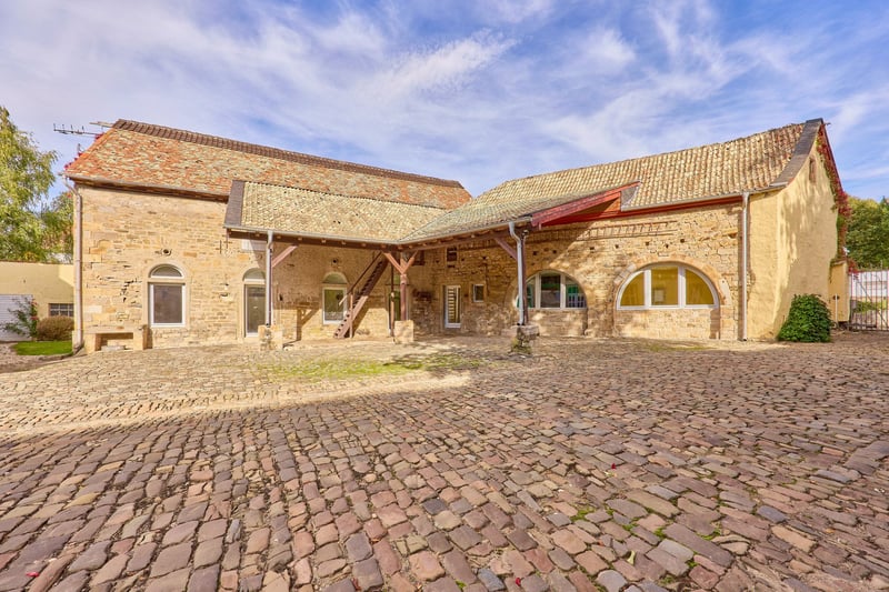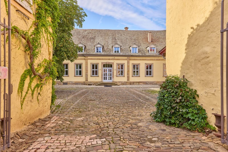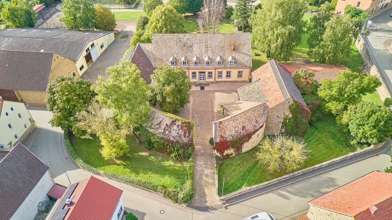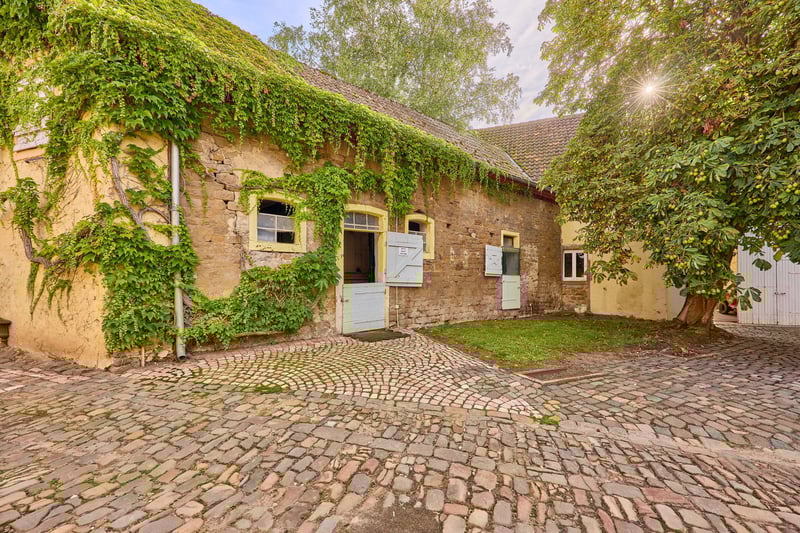 Reitanlage in Rheinhessen mit imposantem Wasserschloss zu verkaufen! *Kaufpreis auf Anfrage* Objektbeschreibung: Um 1724 ließ der Freiherr von Hunolstein in Nieder-Wiesen dieses imposante Wasserschloss errichten, das ursprünglich von einem Wassergraben umgeben war. Noch heute durchzieht ein malerischer Bachlauf den romantischen Schlossgarten und unterstreicht den historischen Charme des Anwesens. In den Folgejahren wurden Nebengebäude, die Gartenanlage sowie in den 1990er Jahren die Reitanlage ergänzt. Das gesamte Ensemble, einschließlich des Schlosshofs, steht unter Denkmalschutz. Das Schloss – mit seinen 560 m² Wohnfläche – selbst wurde 2001 aufwendig kernsaniert, seither modernisiert und verbindet historischen Charakter mit moderner Luxusausstattung. Hochwertige Materialien, Stuckdecken, ein Terrazzomosaikboden im Flur, Granit und Echtholzparkett prägen das Interieur. Die Küche der Marke Poggenpohl ist mit professionellem Gaggenau-Equipment ausgestattet, während das Master-Badezimmer Designer-Elemente von Philippe Starck, freistehende Badewanne und Fußbodenheizung bietet. Ein Kamin im Wohnbereich, eine Öl-Zentralheizung, Videoüberwachung und großzügige Parkanlagen mit romantischen Sitzecken runden das exklusive Wohngefühl ab. Der im Innenhof gelegene Festsaal mit rund 115 m² Fläche, Fußbodenheizung und indirekter Beleuchtung eignet sich ideal für Hochzeiten oder besondere Events und verfügt über eine Ausbaureserve im Dach. Ergänzt wird das Anwesen durch ein Gästehaus mit sechs hochwertig eingerichteten Apartments auf ca. 200 m² Wohnfläche, jeweils mit eigener Küche und Bad, zwei davon mit Terrassen und Blick auf den Schlossgarten. Die Reitanlage umfasst eine 20 x 40 m große Reithalle, einen 20 x 60 m großen Dressurplatz, Paddock- und Innenboxen, Sattelkammern, Reiterstübchen und Winterpaddocks sowie eine denkmalgeschützte freitragende Scheune mit rund 720 m² Grundfläche. Insgesamt erstreckt sich das Anwesen über ca. 18.711 m² und vereint historisches Ambiente, luxuriöse Ausstattung und vielfältige Nutzungsmöglichkeiten zu einem einzigartigen, repräsentativen Anwesen. Ausstattung: Das Schloss: - Baujahr: 1722, Kernsanierung 2001 - Wohnfläche: ca. 560 m² zzgl. 2.600 m² Nutzflächen (Außenbereich, Hallen etc.) - Hochwertige Küche der Marke Poggenpohl mit professionellem Gaggenau-Equipment, Fronten in schokoladen-braun gehalten - Master-Badezimmer (OG) vollständig mit Designer-Elementen von Philip Starck ausgestattet, freistehende Badewanne, schwarzer Granit-Boden mit Fußbodenheizung - Heizung: Öl-Zentralheizung aus 2001, Kamin im Wohnzimmer - Terrazzomosaik im Flur, Steintreppe mit Balustern, aufwendige Stuckdecken mit allegorischen Darstellungen der vier Jahreszeiten - Unterkellerung: vollständig unterkellert (Technik, Heizung, Weinkeller) - Fenster: Doppel-Isolierverglasung, Holz - Böden: Terrazzomosaik (aus 1900), schwarzer Granit, Echtholz-Parkett - Videoüberwachung vorhanden (13 Kameras, App-Steuerung) - Hochwertige und elektrische Tortechnik - Park mit romantischen Sitzecken und Blick zum Reitplatz - PKW Garage im Innenhof, Kopfsteinpflaster und Kiesbett PV-Anlage: - Inbetriebnahme: 2022 - Dient dem Eigenverbrauch - 24,80 kWp (62 Module) Innenhof – Festsaal: - Der Festsaal mit Küche, WC’s, Personalraum verfügt über rund 115 m² Fläche, Fußbodenheizung, indirekter Beleuchtung (ideal für Hochzeiten oder Geburtstage) - Ausbaureserve über dem Festsaal - 3 Innenboxen im Innenhof, Gummiböden, beheizte Tränken - Scheunengebäude (mit PV-Anlage) umfasst zwei Wohnungen für Personal, jeweils mit einer Einbauküche, Wohnzimmer, Badezimmer und abgetrenntem Schlafbereich - Abstellflächen, Futterkammer, Scheunentore zur Abtrennung zum Pferdebereich - Ehemaliger Viehstall seitlich hinter dem Festsaal, derzeit ungenutzt Stallungen: - 6 Paddockboxen an der Reithalle (Marke “Röwer & Rüb”) - 1 Innenboxen an der Reithalle (Marke “Röwer & Rüb”) - 5 Paddockboxen in separatem Stall (grenzt an), eigene Sattelkammer, Putzplatz - Reiterstübchen / Casino mit Theke, Blick zur Reithalle, Sattelkammern, WC’s, Deckenwaschraum - Vorraum für Sprungmaterial Reithalle: - Baujahr: ca. 1990 - Reitmaß: 20 x 40 Meter - Beregnungsanlage vorhanden - Boden: Sand-/Vließgemisch - Beleuchtet und Verspiegelt - Dach: Ethernit Dressurplatz: - Reitmaß: 20 x 60 Meter - Boden: Sand-/Vließgemisch Weiteres: - Winterpaddocks (Sand), Kleinere Graskoppeln - Ehemaliger Tennisplatz mit Tennis-Haus - Freitragende, denkmalgeschützte Scheune angrenzend an die Reithalle mit einer Grundfläche von 720 m² (viel Entwicklungspotenzial, derzeit sind Gastboxen verbaut und es wurde als Heulager genutzt) Gästehaus (inklusive): - Baujahr: 1900, Sanierung 2012 - Wohnfläche: ca. 200 m² - 6 Appartments (voll eingerichtet inkl. Küche) Lage: Nieder-Wiesen liegt im Landkreis Alzey-Worms in Rheinhessen und bietet eine ruhige Wohnlage mit guter Verkehrsanbindung. Über die B420 sowie die Autobahnen A63 und A61 sind Alzey, Mainz, Worms und Kaiserslautern schnell erreichbar. Busverbindungen führen zum Bahnhof Alzey, von wo aus regelmäßige Zugverbindungen in das Rhein-Main-Gebiet bestehen. Der internationale Flughafen Frankfurt am Main liegt rund 45 bis 60 Minuten entfernt und sorgt für eine sehr gute überregionale und internationale Erreichbarkeit. Auch der Flughafen Frankfurt-Hahn im Hunsrück ist in gut einer Stunde erreichbar. Damit verbindet Nieder-Wiesen naturnahes Wohnen mit kurzen Wegen in die wirtschaftlich starken Zentren der Region. Nieder-Wiesen zeichnet sich durch seine ruhige, ländliche Atmosphäre und eine hohe Lebensqualität aus. Für Familien mit Kindern ist die Gemeinde besonders attraktiv: Eine Kindertagesstätte im Ort sorgt für eine frühzeitige Betreuung, während die Grundschule in den Nachbargemeinden Erbes-Büdesheim oder Alzey leicht erreichbar ist. Weiterführende Schulen wie Realschulen, Gymnasien oder Gesamtschulen befinden sich ebe