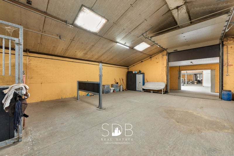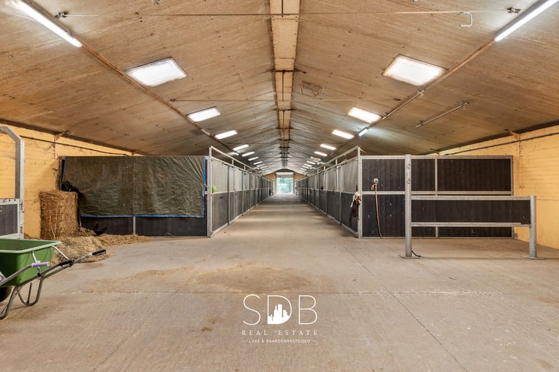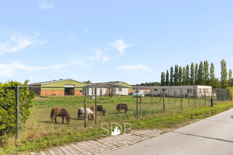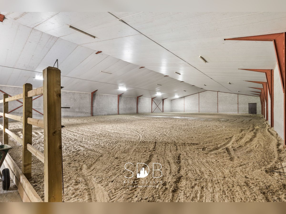 In het hart van de Antwerpse Kempen ligt Weelde, een charmante deelgemeente van Ravels waar we deze boerderij met paardenfaciliteiten en graslanden op 14.490m² aantreffen. Het groene landschap, omringd door bossen en ruiterpaden, maakt deze regio tot een waar paradijs voor paardenliefhebbers en buitenmensen. De centrale ligging is ideaal: u geniet van de serene privacy van het platteland, terwijl steden als Turnhout, Tilburg en Breda vlot bereikbaar zijn. Bovendien grenst Weelde aan de Nederlandse grens, wat extra mogelijkheden biedt voor recreatie, werk en internationale connecties. Op het perceel bevindt zich een bescheiden maar knusse woning, voorzien van alle basiscomfort. Deze woning nodigt uit tot renovatie en/of uitbreiding. Tegelijkertijd biedt deze woning heel wat uitbreidings- en of herbouwmogelijkheden. Deze gelijkvloerse woning beschikt over een eigentijdse, functionele keuken voorzien in al haar faciliteiten. Een ruime woonkamer ingedeeld in een cosy zithoek en een eetruimte. Mooie open ruimtes met een aangename natuurlijke lichtinval. Daarnaast tref je 3 slaapkamers aan. De badkamer is uitgerust met een enkel lavabomeubel, een douche, een ligbad en een toilet. Buitenshuis treffen we diverse stalgebouwen aan. Het 1ste stalgebouw beslaat een oppervlakte van +/- 866m2. Hierin is een binnenpiste aanwezig van 35x19,50m. Verder tref je hier nog voldoende ruimte aan voor het stockeren van diverse materialen en/of opslag van hooi en stro. Het 2de stalgebouw beslaat een oppervlakte van +/- 542m2. Het 3de stalgebouw beslaat een oppervlakte van +/- 664m2. Dit gebouw is ingericht met stallen en poetsplaatsen. Het 4de stalgebouw beslaat een oppervlakte van +/- 1.276m2. Dit gebouw is nog vrij in te richten. De stalgebouwen zijn met elkaar verbonden, wat zorgt voor een uiterst praktische organisatie en heel functioneel in gebruik. Aanpalend tref je diverse graslanden aan. Tevens is er de mogelijkheid om bijkomend 7hectare te huren en/of aan te kopen. Het bedrijf heeft momenteel een geldige omgevingsvergunning voor het houden van 499 kalveren en 104 paarden. Deze boerderij met diverse functionele bijgebouwen biedt tal van mogelijkheden voor hippische activiteiten, waaronder het houden en exploiteren van paarden, afhankelijk van uw profiel en mits het verkrijgen van de vereiste vergunningen, bieden bestaande bijgebouwen heel veel potentieel. Deze landelijke eigendom is een buitenkans vanwege haar capaciteit aan gebouwen, perceeloppervlakte en groene ligging. ** Overname van aandelen Wenst u meer informatie omtrent deze eigendom met paardenaanhorigheden en aanpalende graslanden?! Neem dan gerust contact met ons op. We vertellen u graag meer! www.sdb.realestate