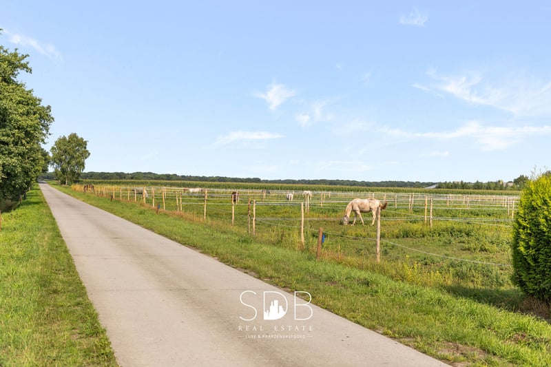 W sercu Antwerpskich Kempen znajduje się Weelde, urokliwa dzielnica Ravels, gdzie napotykamy tę farmę z udogodnieniami dla koni i łąkami na powierzchni 14.490 m². Zielony krajobraz, otoczony lasami i ścieżkami jeździeckimi, sprawia, że ten region jest prawdziwym rajem dla miłośników koni i osób spędzających czas na świeżym powietrzu. Centralna lokalizacja jest idealna: cieszysz się spokojną prywatnością wsi, podczas gdy miasta takie jak Turnhout, Tilburg i Breda są łatwo dostępne. Ponadto, Weelde graniczy z granicą holenderską, co stwarza dodatkowe możliwości dla rekreacji, pracy i międzynarodowych połączeń. Na działce znajduje się skromny, ale przytulny dom, wyposażony we wszystkie podstawowe udogodnienia. Ten dom zachęca do renowacji i/lub rozbudowy. Jednocześnie oferuje wiele możliwości rozbudowy i/lub odbudowy. Ten parterowy dom dysponuje nowoczesną, funkcjonalną kuchnią z pełnym wyposażeniem. Przestronny salon podzielony jest na przytulny kącik wypoczynkowy i jadalnię. Piękne otwarte przestrzenie z przyjemnym naturalnym światłem. Dodatkowo znajdują się 3 sypialnie. Łazienka jest wyposażona w umywalkę, prysznic, wannę oraz toaletę. Na zewnątrz znajdują się różne budynki stajenne. Pierwszy budynek stajenny ma powierzchnię +/- 866 m². Znajduje się w nim ujeżdżalnia o wymiarach 35x19,50 m. Ponadto jest tu wystarczająco dużo miejsca na przechowywanie różnych materiałów i/lub składowanie siana i słomy. Drugi budynek stajenny ma powierzchnię +/- 542 m². Trzeci budynek stajenny ma powierzchnię +/- 664 m². Ten budynek jest urządzony z boksami i miejscami do czyszczenia. Czwarty budynek stajenny ma powierzchnię +/- 1.276 m². Ten budynek jest jeszcze do zagospodarowania. Budynki stajenne są ze sobą połączone, co zapewnia bardzo praktyczną organizację i jest bardzo funkcjonalne w użytkowaniu. Sąsiadujące łąki są dostępne. Istnieje również możliwość wynajęcia i/lub zakupu dodatkowych 7 hektarów. Firma posiada obecnie ważne pozwolenie na prowadzenie działalności w zakresie hodowli 499 cieląt i 104 koni. Ta farma z różnymi funkcjonalnymi budynkami oferuje wiele możliwości dla działań jeździeckich, w tym hodowlę i eksploatację koni, w zależności od Twojego profilu i po uzyskaniu wymaganych zezwoleń, istniejące budynki mają ogromny potencjał. Ta wiejska nieruchomość to wyjątkowa okazja ze względu na pojemność budynków, powierzchnię działki i zieloną lokalizację. ** Przejęcie udziałów Czy chcesz uzyskać więcej informacji na temat tej nieruchomości z udogodnieniami dla koni i przyległymi łąkami?! Skontaktuj się z nami. Chętnie opowiemy więcej! www.sdb.realestate