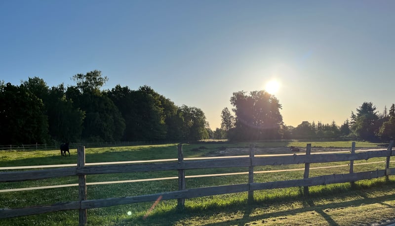 ***Aktuell ein Platz frei *** Unsere Pensionspferde profitieren von: - Paddock und ca 1 ha Fläche pro Gruppe bei max. 4 Herdenmitgliedern - Weitläufige Sommerweide - Heu ad libitum - getrennten Fress- und Liegeplätzen - freie Wahl aller Dienstleister (Hufschmied, TA, Trainer etc.) Die Anlage bietet - Reitplatz (50m×20m) - weitläufiges Ausreitgelände - Stellplätze für Sattelschränke - ruhige ausgeglichene Stallgemeinschaft mit sehr guter Atmosphäre Gerne kannst du eine Stallbesichtigung vereinbaren unter +49 155 65475032
