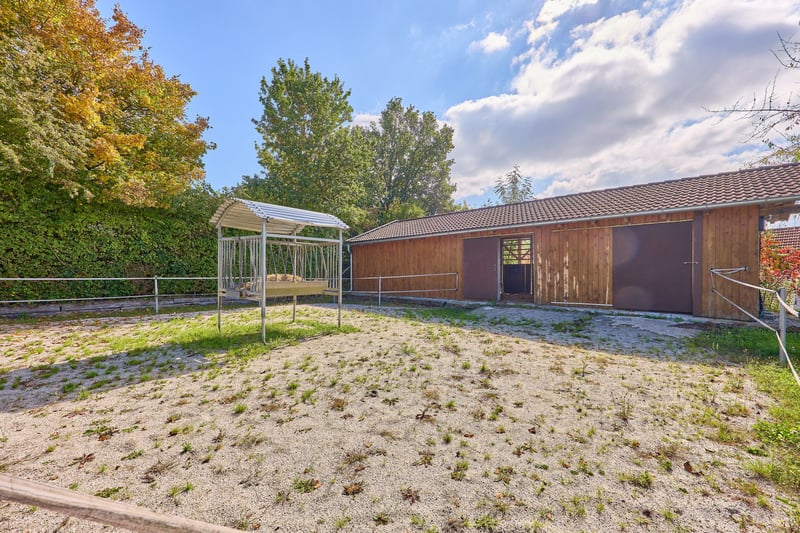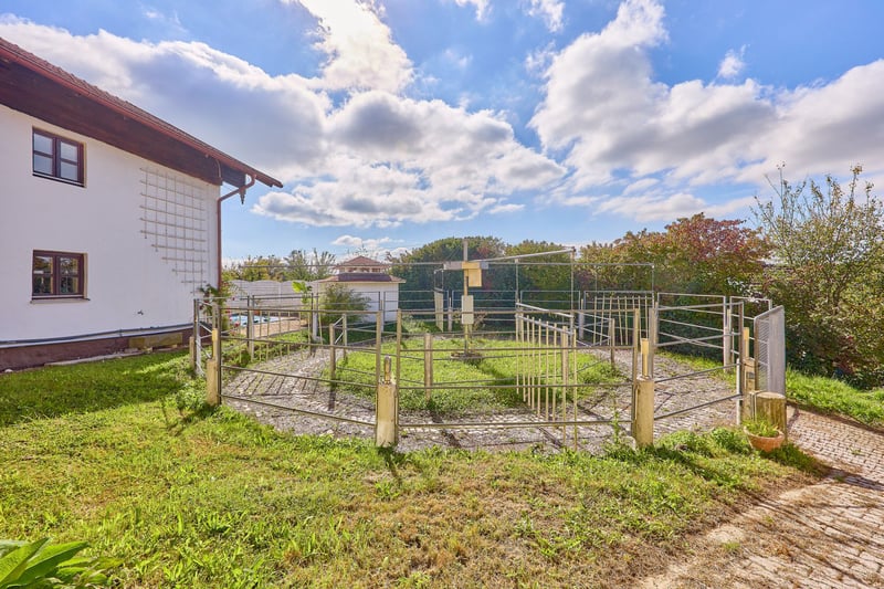 Pferdeimmobilie in Bayern kaufen – charmante Reitanlage mit gemütlichem Wohnambiente! Objektbeschreibung: Dieses gemütliche Landhaus mit anschließender Reitanlage liegt in idyllischer Lage in Winzer, Landkreis Deggendorf, auf einem ca. 14.720 m² großen Grundstück zzgl. 1,8 ha Pachtflächen (seit 30 Jahren direkt am Hof). Es verbindet bayerischen Landhauscharme mit einem hohen Maß an Gemütlichkeit & Komfort sowie ausgewählten luxuriösen Details. Die Reitanlage wird derzeit privat genutzt. Das Wohnhaus bietet ca. 140 m² Wohnfläche zuzüglich Nutzflächen wie Heizraum, Abstellflächen und einem teilweise unterkellerten Gewölbe-Weinkeller. Eine moderne Einbauküche aus 2021, Öl-Zentralheizung (Viessmann, 1994) kombiniert mit Holzofen, Warmwasser über Solarthermie (2004) und ein Kamin im Wohnzimmer sorgen für ein gemütliches Wohngefühl. Ein besonderes Highlight ist der Außenpool mit Wellness-Terrasse und Gartenhaus. Die Einliegerwohnung (ca. 75 m²) mit separatem Zugang sowie ein angrenzendes Büro (ca. 44 m²) im Obergeschoss bieten flexible Nutzungsmöglichkeiten für Gäste, Familie oder Homeoffice. Die gepflegte Reitanlage umfasst eine Stallgasse (2002) mit 7 Boxen, beheiztem Tränkensystem, Sattel- und Futterkammer, Waschplatz sowie angrenzenden Maschinenunterstand und Lagerflächen. Eine Reithalle (40 x 25 m, Baujahr 2004) mit Beregnungsanlage, ein Offenstall für 4 Pferde, eine Führmaschine und großzügige Koppelflächen direkt am Hof runden das Pferdeangebot ab. Weitere Gebäude wie eine Rundbogenhalle (2023) und die Scheune im Innenhof bieten zusätzlichen Lagerraum. Der gepflasterte Hof mit Toranlagen, PKW-Stellplätzen und gemütlicher Innenhofterrasse sorgt für ein harmonisches Gesamtbild. Dieses Anwesen verbindet komfortables Wohnen, charmantes Landhausambiente und funktionale Reitausstattung – ein Ort zum Wohlfühlen in Winzer, Landkreis Deggendorf. Ausstattung: Wohnhaus: - Baujahr: unbekannt (bestätigt durch Amt) - Wohnfläche: ca. 140 m² zzgl. Nutzflächen (Heizraum, Abstellflächen, Weinkeller etc.) - Moderne Einbauküche aus 2021 - Heizung: Öl (zzgl. Holz-Ofen) aus 1994 der Marke Viessmann, Warmwasseraufbereitung über Solarthermie aus 2004 (Pufferspeicher 2004) - Kamin im Wohnzimmer - Eigene Quelle - Außen-Schwimmbad mit Wellness-Terrasse und Gartenhaus - Schwimmbad Maße: 8 x 4 Meter aus dem Jahr 2010 - Fenster: Doppelverglasung, Holz aus ca. 1990 - Dämmungen: Zwischendecken - Einliegerwohnung und separates Büro vorhanden - Scheune und Parkplätze für PKWs im Innenhof - Hochwertige Tortechnik - Gemütliche Terrasse im Innenhof Einliegerwohnung & Büro: - Modernisiert: 2022 - Wohnfläche: ca. 75 m² + angrenzendes Büro 44 m² - Befindet sich im ersten OG und ist über eine Außentreppe zu begehen Stallungen: - Baujahr Stallgasse: 2002 - 7 Pferdeboxen, Maße 3 x 3,50 Meter - Beheizbares Tränkensystem - Angrenzender Maschinenunterstand und kleines Heulager (nutzbar als 2-4 weitere Boxen, Wasseranschluss vorhanden) - Sattelkammer und Futterkammer - Waschplatz - Angrenzend zum Pferdestall finden Sie eine Lagermöglichkeit für Kleingeräte, Quad, Kutsche, Fahrzeuge etc. Reithalle: - Baujahr: 2004 - Reitmaß: 40 x 25 Meter - Beregnungsanlage vorhanden - Boden: Sand-/Spänegemisch - Beleuchtet, Windschutznetze Führmaschine: - Baujahr: 2002 - Ausgelegt für 4 Pferde Offenstall: - Baujahr: 2003 - Ausgelegt für 4 Pferde - Selbsttränken vorhanden - eigene Sattelkammer vorhanden - Paddock mit Reitplatz Matten (90 m²) und Heuraufe Weiteres: - Koppeln direkt am Hof - Rundbogenhalle aus 2023 zur Heulagerung - Scheunengebäude im Innenhof (ehemals Stallungen, Ideal als Heulager) - Der Pferdebereich ist vollständig gepflastert und matschfrei zu begehen Lage: Die Gemeinde Winzer liegt im niederbayerischen Landkreis Deggendorf und überzeugt durch ihre verkehrsgünstige Lage inmitten einer landschaftlich reizvollen Umgebung. Dank der Nähe zur Bundesstraße B8 sowie zur Bundesautobahn A3 (Passau–Regensburg) ist Winzer hervorragend an das regionale und überregionale Verkehrsnetz angebunden. Über die Anschlussstellen Iggensbach und Deggendorf erreichen Sie schnell wichtige Verkehrsachsen in Richtung München, Regensburg und Passau. Der Flughafen München liegt rund 90 Autominuten entfernt. Für Pendler bietet die Lage somit eine ideale Kombination aus ländlicher Ruhe und optimaler Anbindung an Arbeits- und Bildungszentren in der Region. Die Gemeinde Winzer im Landkreis Deggendorf bietet eine ideale Kombination aus ländlicher Ruhe, familiärem Umfeld und guter Grundversorgung. Mit rund 3.500 Einwohnern verfügt der Ort über eine solide Infrastruktur, die den täglichen Bedarf bequem vor Ort abdeckt. Im Ortskern befinden sich Supermärkte, Bäckerei, Metzgerei, Bankfiliale, Friseur sowie kleinere Fachgeschäfte. Für größere Einkäufe oder Spezialsortimente bieten die nahegelegenen Städte Hengersberg und Deggendorf ein breites Angebot an Fachmärkten, Baumärkten und Einkaufszentren. Die medizinische Versorgung in und um Winzer ist sehr gut ausgebaut. Haus- und Zahnärzte, Apotheken sowie verschiedene Fachärzte sind in der Gemeinde und in den Nachbarorten vorhanden. Für eine umfassende medizinische Betreuung steht das Donau-Isar-Klinikum Deggendorf in kurzer Fahrdistanz zur Verfügung. Familien profitieren von einem umfangreichen Bildungsangebot. In Winzer selbst gibt es Kindergarten und Grundschule, weiterführende Schulen wie Mittelschule, Realschule und Gymnasium sind im nahen Hengersberg oder Deggendorf erreichbar. Schulbusse verkehren regelmäßig und sorgen für eine gute Erreichbarkeit. Neben einer soliden Infrastruktur überzeugt Winzer durch eine hohe Lebensqualität. Die Gemeinde liegt in einer reizvollen Landschaft nahe der Donau und bietet zahlreiche Freizeitmöglichkeiten – von Rad- und Wanderwegen über Sportvereine bis hin zu einem aktiven Gemeinschaftsleben mit traditionellen Festen und Veranstaltungen. Energieausweis: Wesentl