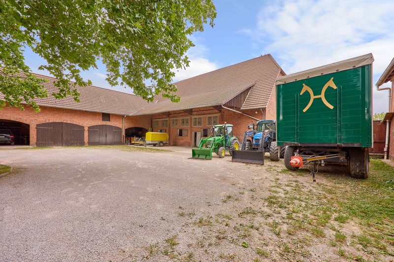 Bitte füllen Sie das nachfolgende Kontaktformular vollständig aus bevor Sie uns telefonisch kontaktieren. Vielen Dank für Ihr Verständnis! Reitanlage bei Hannover – Reithalle, Springplatz & ein großes Mehrfamilienhaus inklusive! Objektbeschreibung: Diese Reitanlage bei Hannover – in Koldingen – vereint komfortables Wohnen mit professioneller Pferdehaltung. Der Haupthof ist in zwei große Stallgebäude, ein Wohnhaus und ein Wirtschaftsgebäude unterteilt. Ergänzt durch umfassende Trainingsmöglichkeiten – dieser Pferdehof eignet sich daher wunderbar für einen Pensionsbetrieb, Ausbildung & Verkauf von Pferden oder auch für eine Reitschule. Das Wohnhaus bietet ca. 317 m² Wohnfläche, verteilt auf vier Einheiten. Das Erdgeschoss wird derzeit selbst genutzt und verfügt über einen Gartenzugang, die Wohnungen in Ober- und Dachgeschoss eignen sich hervorragend für Familienangehörige, Angestellte oder zur Vermietung. Gemeinsam mit dem Wirtschaftsgebäude und den Stallungen stammt es aus dem Jahr 1933. Die Stallgebäude und das Wirtschaftsgebäude erhielten 2008 eine umfassende Dach- und Dachstuhlerneuerung, sodass die Gebäude heute eine gelungene Verbindung aus historischem Charme und moderner Funktionalität darstellen. Die Stallungen mit insgesamt 29 großzügigen Boxen, darunter 25 helle Fensterboxen, bieten Platz für Ihre Vierbeiner – derzeit wird die Immobilie als gut ausgelasteter Pensionsbetrieb geführt. In der Vergangenheit wurden außerdem Turniere veranstaltet und auch für professionelle Lehrgänge eignen sich Reitplatz und Reithalle gut. Für Training und Bewegung steht modernste Infrastruktur zur Verfügung: ein großzügiger Reitplatz (40 x 60 m), eine Reithalle (20 x 63 m), eine Longierhalle und ein Longierplatz (beide 2021 erbaut), eine Führanlage, mehrere Sandpaddocks und Koppeln. Ein Wirtschaftsgebäude mit gemütlichem Jagdzimmer, Werkstatt und Garagen, große Heulagerflächen über den Stallungen, eine genehmigte Mistplatte sowie zahlreiche Stellplätze für Anhänger und Fahrzeuge runden das Angebot ab. Diese Reitanlage bei Hannover verbindet ländliche Idylle mit bester Infrastruktur und ist damit eine seltene Gelegenheit in Zentrumsnähe! Ausstattung: Wohnhaus: - Baujahr: 1933 - Wohnfläche: ca. 317 m² - 4 Wohneinheiten: EG selbstgenutzt, zwei Wohnungen im Obergeschoss & eine Wohnung im Dachgeschoss - Kellergeschoss mit HWR, Technik, Heizung - Heizung: Erdgas aus 2018 - Fenster: 1999/2000 Doppel-Verglasung, Kunststoff Innenhof / Wirtschaftsgebäude: - Baujahr: 1933 - Dacherneuerung inkl. Dachstuhl in 2008 - Im EG befindet sich ein Jagdzimmer, eine Küche, Werkstatt und Garagen für Kleingeräte und PKW’s - Ausbaureserven im Dach Zwei große Stallgebäude: - Baujahr 1933 - Dacherneuerung inkl. Dachstuhl in 2008 - 29 Pferdeboxen (davon 25 Fensterboxen und 4 Innenboxen) - Material Boxen: 14 Boxen mit Holz/Gitter, 15 Boxen sind gemauert - Boxengröße 3,5 x 3,5 m und 4 x 4 m Longierplatz: - Baujahr 2021 - Fläche: 23 x 23 Meter - Boden: Sand (Fairground) - Holzzaun und Beregnung Longierhalle: - Baujahr 2021 - Durchmesser: 17,2 Meter - Boden: Sand (Fairground) - Beregnungsanlage vorhanden - Hersteller: Classic Fences (4 Aluringe mit Holzkonstruktion, Dach: Aluträger mit Planenmaterial) Reitplatz: - Baujahr: 2017 - Reitfläche: ca. 40 x 60 Meter - Boden: Sand (Fairground) - Beregnung vorhanden - Holzzaun Reithalle: - Baujahr 1975 - Reitfläche: ca. 20 x 63 Meter - Boden: Sand (Fairground) - Beregnungsanlage: Fa. Buchholz - Bauweise: Stahlgerüst - Dach: Ethernit - Reiterstübchen mit Küche und WC’s Führanlage: - Ausgelegt für 4 Pferde - Überdachter Hufschlag - Gummiboden Weiteres: - 4 Sandpaddocks - Solarium - 11 Anhängerstellplätze - Genehmigte Mistplatte - 2 Große Heulager über den Stallungen Lage: Koldingen ist ein Ortsteil der Stadt Pattensen in der Region Hannover und liegt südlich der Landeshauptstadt. Über die nahegelegene Bundesstraße B3 erreicht man Hannover in rund 20 Minuten Fahrzeit, während Sarstedt und Hildesheim in südlicher Richtung ebenfalls schnell erreichbar sind. Die Anbindung an die Autobahnen ist ebenfalls günstig: Über die Anschlussstellen Hannover-Süd oder Laatzen gelangt man sowohl auf die A7 in Richtung Hamburg und Kassel als auch auf die A2 in Richtung Berlin und Dortmund. Auch der Flughafen Hannover-Langenhagen ist in etwa einer halben Stunde zu erreichen, sodass Koldingen sowohl für den regionalen als auch für den überregionalen Verkehr hervorragend angebunden ist. Mit rund 640 Einwohnern bietet Koldingen eine ruhige, dörfliche Atmosphäre, die besonders für Familien und Naturliebhaber attraktiv ist. Die dörfliche Struktur fördert ein starkes Gemeinschaftsgefühl, unterstützt durch lokale Vereine und regelmäßige Veranstaltungen. Die Nähe zur Leine und das angrenzende Naturschutzgebiet „Leineaue zwischen Ruthe und Koldingen“ bieten zahlreiche Freizeitmöglichkeiten für Outdoor-Aktivitäten wie Wandern und Radfahren. Für die frühkindliche Betreuung und Bildung stehen den Familien in Pattensen verschiedenen Kindertagesstätten und Schulen zur Verfügung. Die nächstgelegene Grundschule befindet sich etwa 3 Kilometer entfernt, und ist sowohl mit dem Auto als auch mit öffentlichen Verkehrsmitteln gut zu erreichen. Die nächstgelegene Apotheke befindet sich ebenso in Pattensen, dort finden die Bewohner eine umfassende medizinische Versorgung vor, einschließlich Hausärzten und Fachärzten. Pattensen bietet eine sehr gute Nahversorgung mit allem, was man für den Alltag braucht. Supermärkte, Bäckereien, Metzgereien, Drogerien sowie verschiedene Fachgeschäfte sorgen für eine komfortable und vielfältige Einkaufsmöglichkeit direkt vor Ort. Durch die kurze Entfernung zu Hannover und Laatzen sind zudem auch besondere Einkäufe oder Shopping-Touren schnell und unkompliziert möglich, sodass Koldingen die ruhige Wohnqualität eines Dorfes mit guter Erreichbarkeit städtischer Angebote ideal 