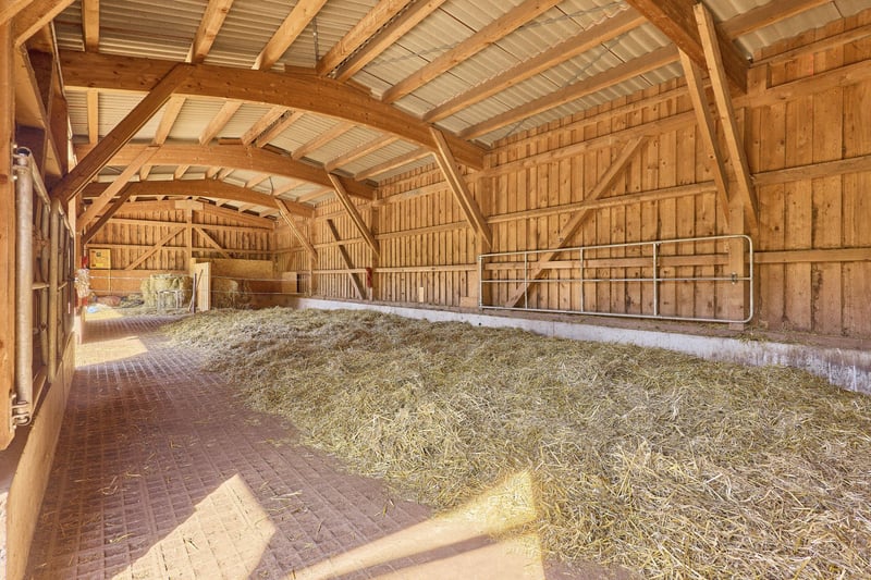 Reitanlage in Rheinland-Pfalz mit prämiertem HIT-Aktivstall, Reithalle und modernem Landhaus! Objektbeschreibung: Diese neuwertige und durchdacht angelegte Reitanlage im Donnersbergkreis in Rheinland-Pfalz bietet ideale Voraussetzungen für pferdegerechtes Leben und Arbeiten in ruhiger, naturnaher Umgebung. Das Herzstück der Anlage bildet der rund 6.000 m² große HIT-Aktivstall, der 2019 mit 7 goldenen Sternen der LAG ausgezeichnet wurde. Er bietet optimale Bedingungen für moderne Pferdehaltung: mit überdachten Heu- und Wasserstationen (beheizt), großzügiger Liegehalle, Sandwälzplatz, Barhufpfad sowie einem durchgehend matschfreien Auslauf mit Spiel- und Ruhebereichen. Bis zu 30 Pferde leben hier in einem gemischten Herdenverband. Für Reiter:innen bietet die Anlage eine Vielzahl durchdachter Annehmlichkeiten: eine beheizte, alarmgesicherte Sattelkammer mit persönlichem Spind pro Pferd, ein Putzplatz mit Waschbox und Solarium sowie eine zweite Außendusche sorgen für Komfort im Alltag. Ein gemütliches Reiterstübchen mit Küchenzeile, Kamin, Leseecke und einer Sonnenterrasse mit Blick auf die Anlage lädt zum Verweilen ein oder bietet Raum für Seminare! Die Trainingsmöglichkeiten umfassen eine helle, luftige Reithalle (Maße: 20x40m) aus 2022 und einen in 2023 sanierten Roundpen (Durchmesser 19m). Direkt angrenzend beginnt ein weitläufiges Ausreitgelände am Rande des Pfälzer Waldes mit abwechslungsreichen Wegen für Einsteiger und Fortgeschrittene. Das gesamte Anwesen erstreckt sich über eine beeindruckende Grundstücksfläche von 66.409 m² im Eigentum. Weitere gepachtete Flächen ergänzen den Betrieb ideal und bieten zusätzliche Flexibilität, insbesondere für die Weidewirtschaft. Zum Angebot gehört außerdem ein modernes und effizientes Einfamilienhaus im Landhausstil, das im Jahr 2016 erbaut wurde. Es überzeugt durch zeitgemäße Architektur, hochwertige Ausstattung und ein gemütliches Wohnambiente – ideal als privates Zuhause oder als Lebensmittelpunkt für Betreiber:innen der Anlage. Ausstattung: Wohnhaus: - Baujahr: 2016 - Küche: Landhausküche aus 2016, Induktionsherd und Gaskochfeld - Heizung: Gas, Brennwerttherme, Solarthermie zur Warmwasserunterstützung, Fußbodenheizung, zusätzlicher Kaminofen - Bauweise: Holzständerbauweise, Niedrigenergiehaus KfW 70 - Fenster: Dreifachverglasung, Kunststoff, Sprossenfenster - Boden: Parkett und Fliesen - Unterkellerung: Nicht unterkellert - Garten mit Sonnenterrasse und überdachter Lounge - KFZ Stellplätze auf dem Grundstück HIT-Aktivstall: - 2019 mit 7 goldenen Sternen der LAG ausgezeichnet! - Baujahr: 2016 - Auslauffläche für Pferde: ca. 5.600 m² - Pferdeanzahl: 30 Pferde (davon 5 Paddockboxen zur Integration) - Kraftfutterautomat, Selektionstore, angrenzende Weidefläche, mehrere überdachte Wasser- und Heustationen (beheizt, Leitungswasser) - Großzügige Liegehalle mit angrenzender überdachter Mistplatte - Mehrere Sandwälzplätze, Barhufpfad mit unters. Bodenbeschaffenheiten - ca. 650 Meter langer Trail Reithalle: - Baujahr: 2022, Panoramareithalle - Reitfläche: 20 x 40 Meter - Boden: Nordseeboden - Hersteller: Hörmann (Leimbinder, Stahl) - Beregnungsanlage vorhanden Wirtschaftsgebäude: - Baujahr: 2016 - Sattelkammer (einbruchssichere Tür WK 2 mit elektrischem Schließzylinder) - Überdachte Putzplätze Indoor & Outdoor und Waschbox (Warmwasser) - Großes Reiterstübchen / Seminarraum mit Küche und WC, Technikraum, Deckenkammer, Futterkammer Gastpferdebereich (neben Reithalle): - Baujahr: 2016 - 4 Paddockboxen, wird derzeit aber als Offenstall genutzt (bietet jedoch eigentlich eine separate Stall-Einheit mit eigener Sattelkammer) - Ideal für Gastpferde z.B. bei Lehrgängen oder als Reha-Bereich - befestigter Offenstallbereich mit Heuraufe Longierzirkel: - Baujahr: 2023 - Durchmesser 19 Meter - Boden:Hackschnitzel Sand Gemisch Rundbogenhalle: - Baujahr: 2016 - Fläche: 250 m² / Platz für ca. 342 Rundballen - Geschotterter Untergrund, 3 Seiten geschlossen - Zelthalle Weiteres & Pachtflächen: - Sole-Inhalationszelt für 2 Pferde - Pferdedeckentrockner - ca. 1 ha Pachtwiesen Lage: Die Reitanlage befindet sich im westlichen Teil des Donnersbergkreises in Rheinland-Pfalz (Wartenberg-Rohrbach) – eingebettet in eine naturnahe Umgebung mit gleichzeitig hervorragender infrastruktureller Anbindung. Die nächstgelegene Autobahnauffahrt zur A63 liegt nur wenige Minuten entfernt und bietet eine schnelle Verbindung in Richtung Mainz, Kaiserslautern und zur A6. Der nahegelegene Bahnhof mit Anbindung an die Strecke Kaiserslautern–Bad Kreuznach sorgt zudem für eine gute Erreichbarkeit mit dem Zug. Die Umgebung zeichnet sich durch ein aktives, gut vernetztes Gemeindeleben aus. Trotz ihrer überschaubaren Größe bietet die Region vielfältige Vereinsaktivitäten, kulturelle Veranstaltungen und ein starkes ehrenamtliches Engagement. Von Sportvereinen über Dorffeste bis hin zu saisonalen Märkten – die soziale Struktur ist lebendig und familiär. Die landschaftlich reizvolle Lage im Nordpfälzer Bergland lädt zu Outdoor-Aktivitäten wie Wandern, Ausreiten und Radfahren ein und bietet Erholung direkt vor der Haustür. Die Nähe zur Stadt Kaiserslautern (ca. 15 Autominuten) verbindet das ländliche Leben mit den Vorteilen urbaner Infrastruktur – darunter Einkaufsmöglichkeiten, medizinische Versorgung, kulturelle Angebote sowie Hochschulen und Fachschulen. Für Familien besonders attraktiv: In der Umgebung gibt es fußläufig erreichbare Kindertagesstätten sowie gut angebundene Grund- und weiterführende Schulen. Der Alltag ist sowohl mit dem Auto als auch mit öffentlichen Verkehrsmitteln gut zu organisieren. Insgesamt bietet dieser Standort eine harmonische Verbindung aus ruhiger, naturnaher Lage, guter Verkehrsanbindung und lebendigem, sozialem Umfeld – ideal für Menschen, die das Landleben genießen und zugleich die Nähe zur Stadt schätzen. Die genaue Adresse erhalten Sie mit dem Exposé. Ene